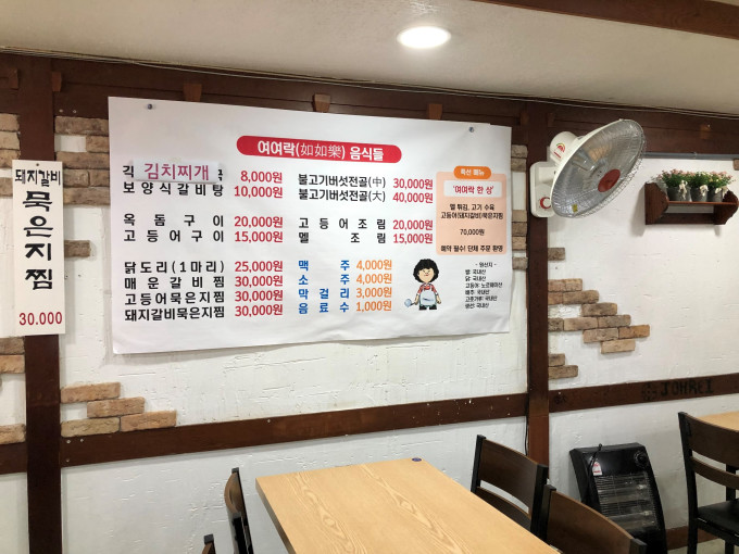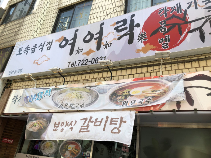 因为已经过了饭点,大多数餐厅都已经午休了,我们从牧官衙右边巷子往后走,在一家叫“休”的韩服店对面,看到一家叫如如乐的饭店。