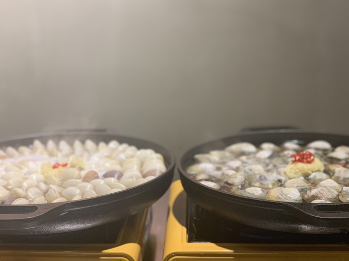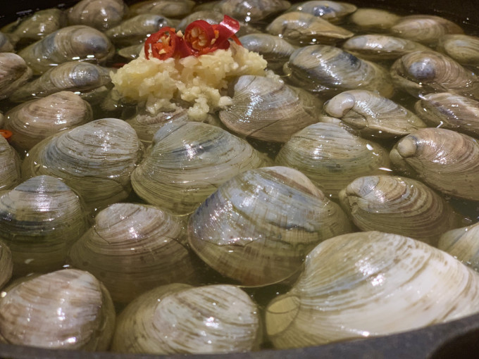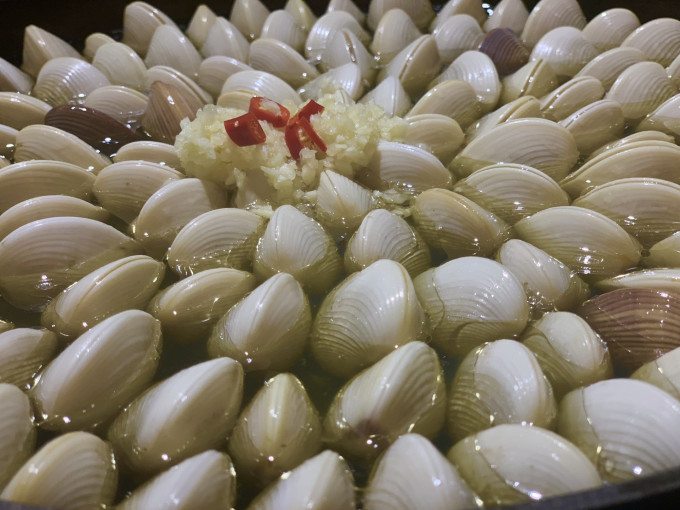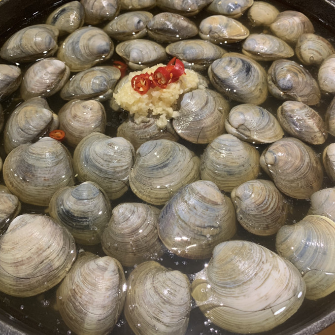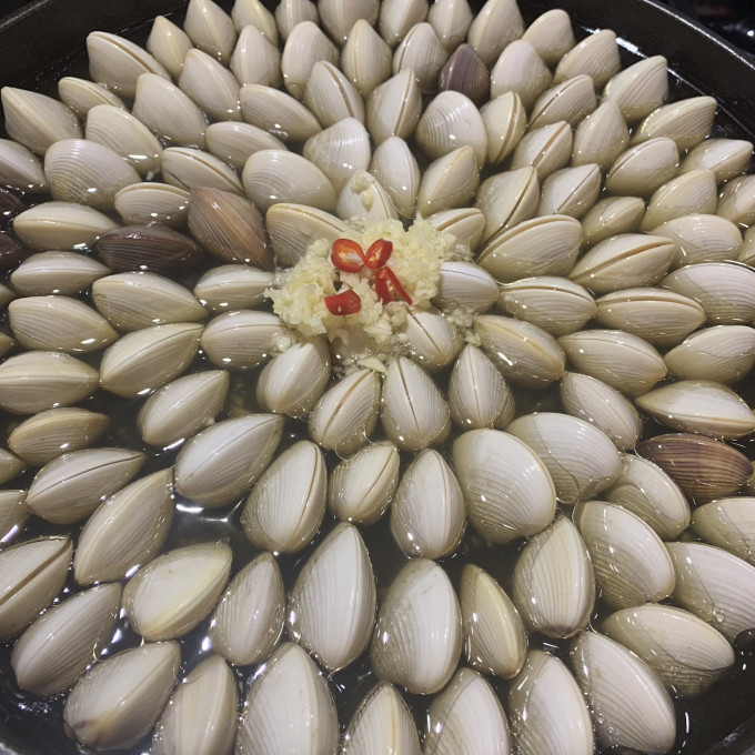 看着一个个贝慢慢打开 最后用汤汁烫一份豆苗