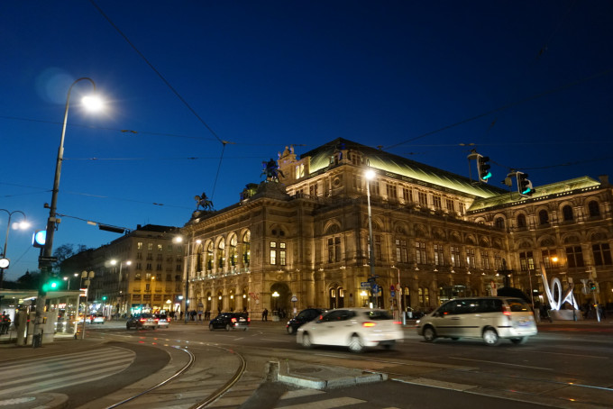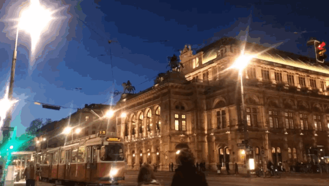 晚饭后我们要去金色大厅听音乐会,路过了国家歌剧院,刚好有电车驶过,朋友拍的延时摄影,感觉超棒。
