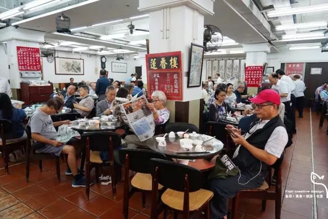 莲香楼,在香港人心中的地位就像上海的德大,这里也许是香港为数不多最后几间还有老阿姨推着点心手车喊话,任食客自行挑选蒸点的茶楼。清晨八点多的二楼,满满堂堂坐着老人和中外的游客,虽不见从前托着鸟笼遛鸟的常态,但划报猜马的习惯依旧保留至今。头顶悬空的木制鸟笼里皆有一只灵巧的仿真雀鹂,若不细看,真有瞬间穿越至香港TVB电视剧中的错觉。