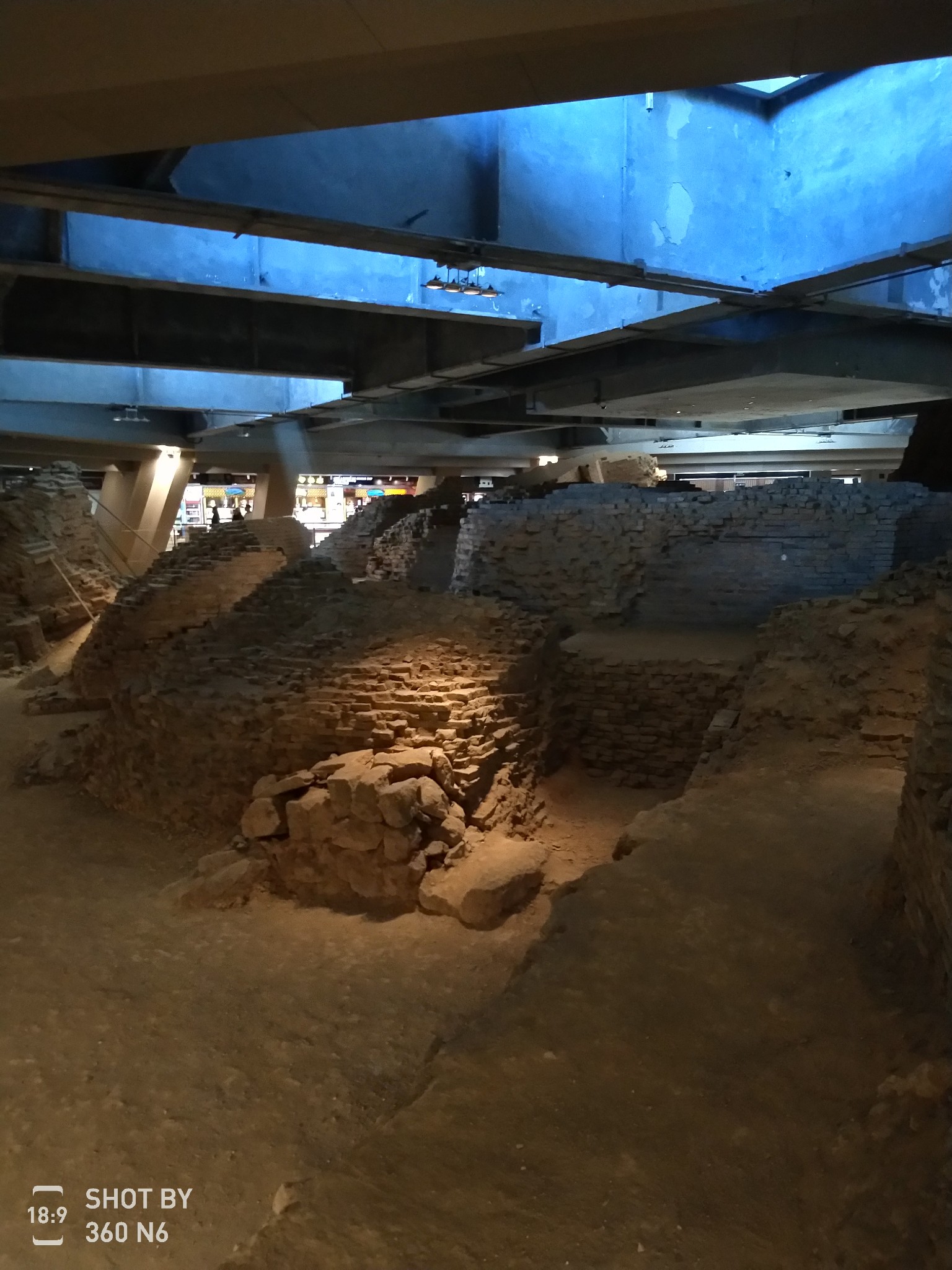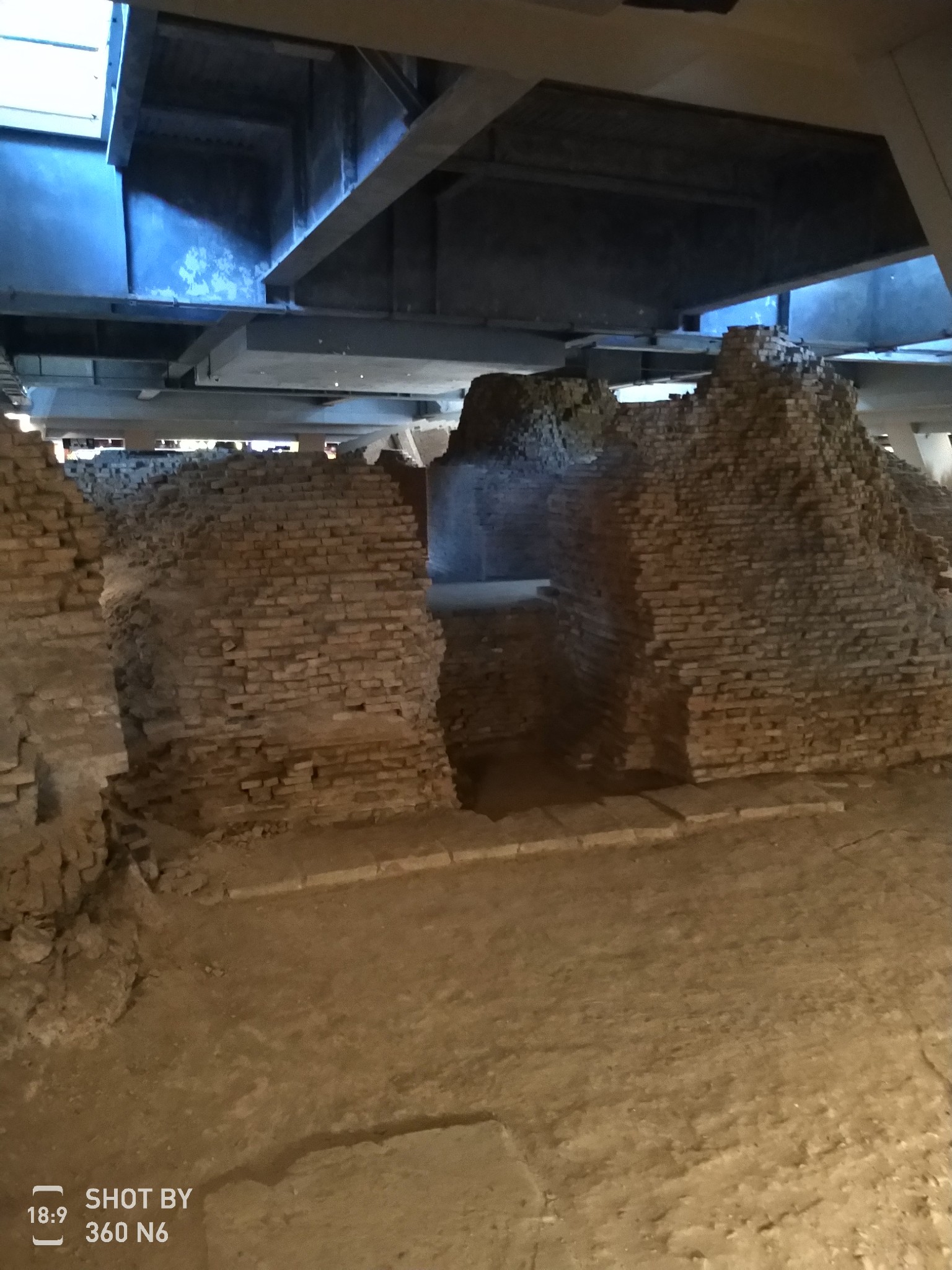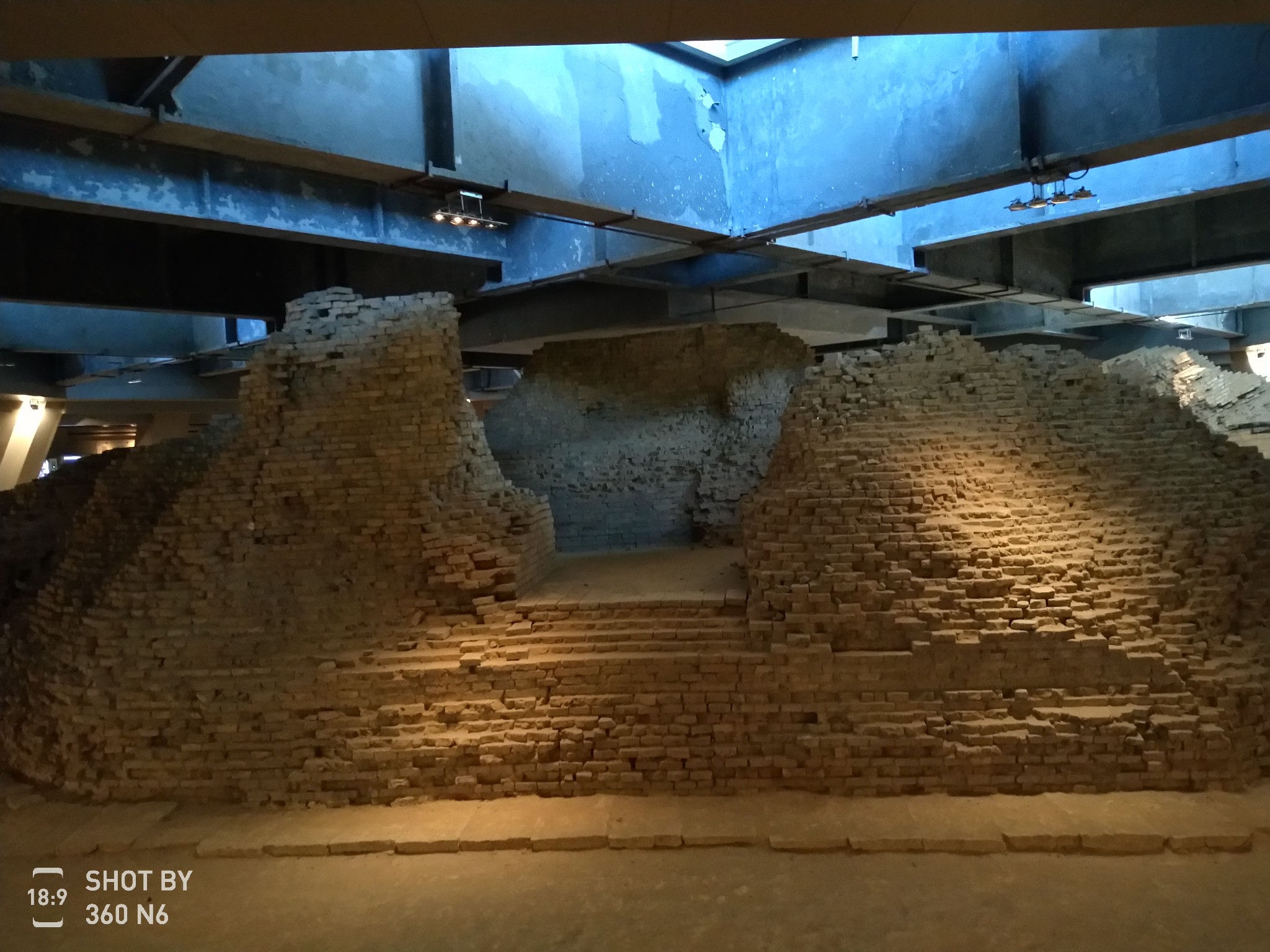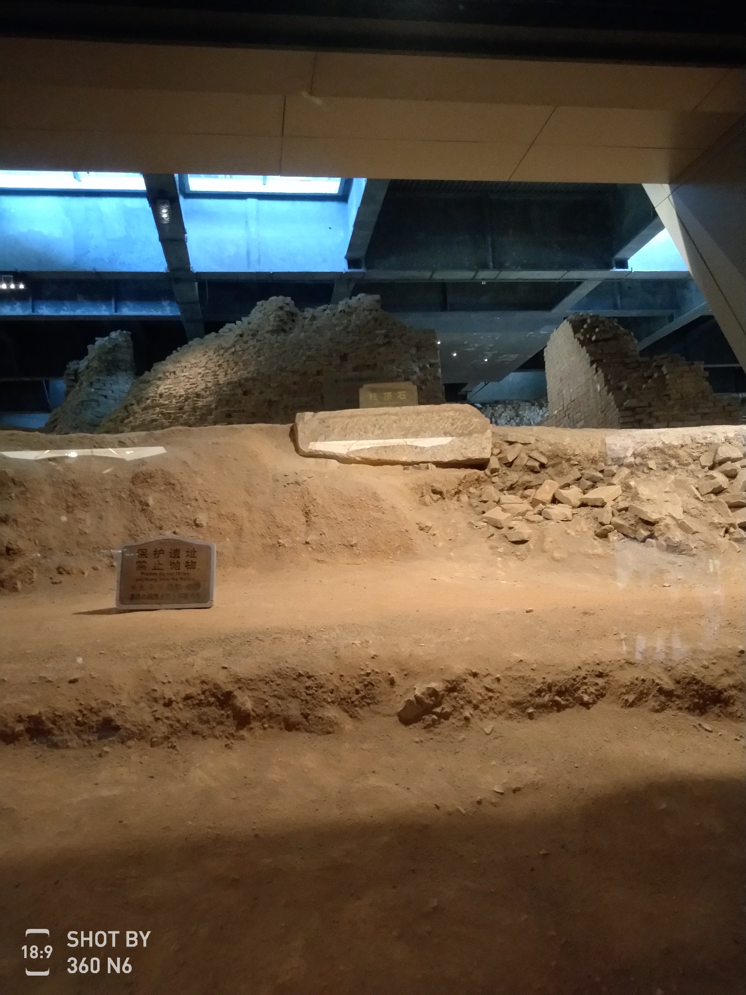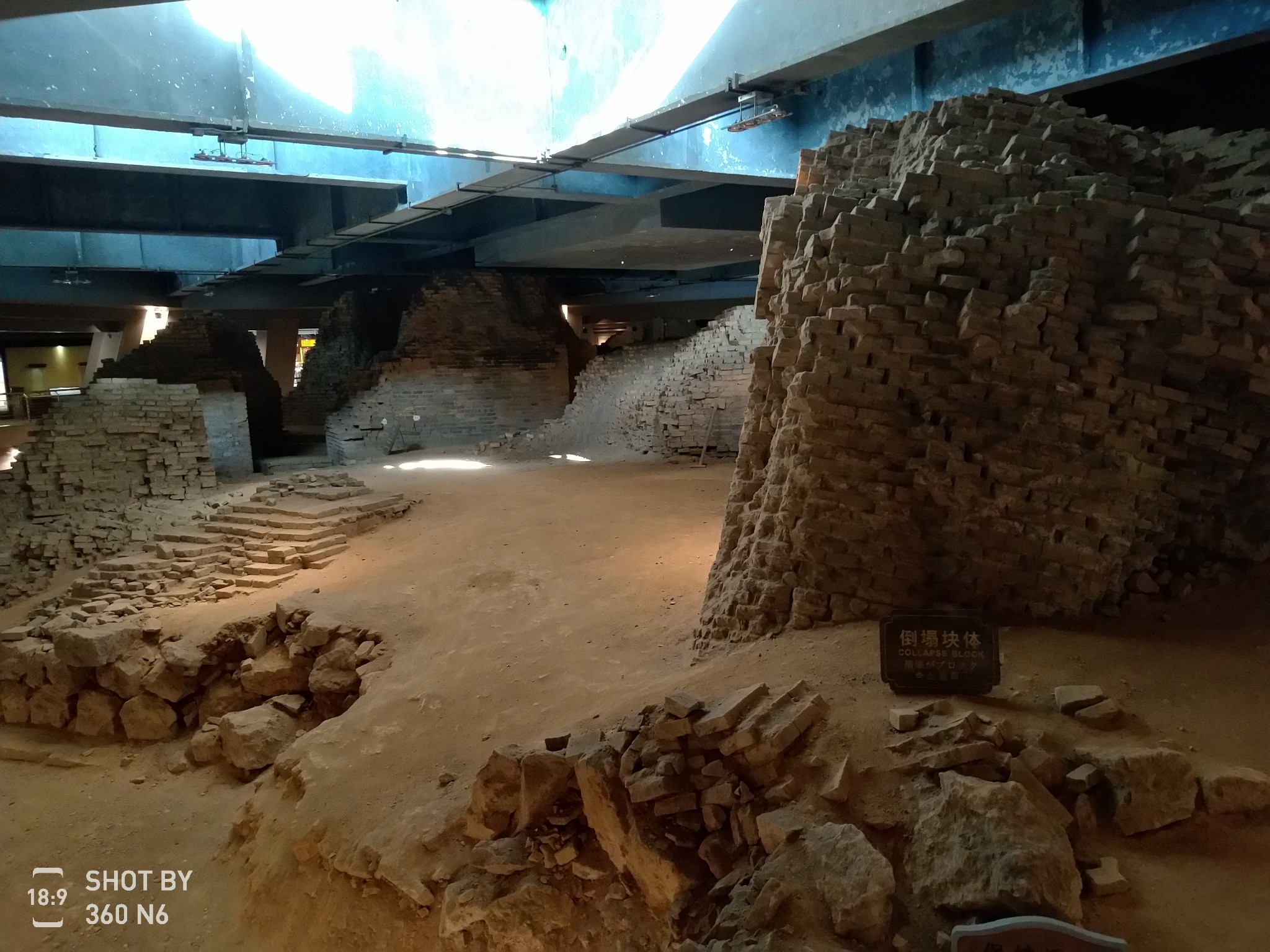 在台基二层,可以看到遗址的模样。整个遗址区被玻璃包围着,以防氧化和人为破坏,遗址那一块块的塔砖被仔细地包裹着。