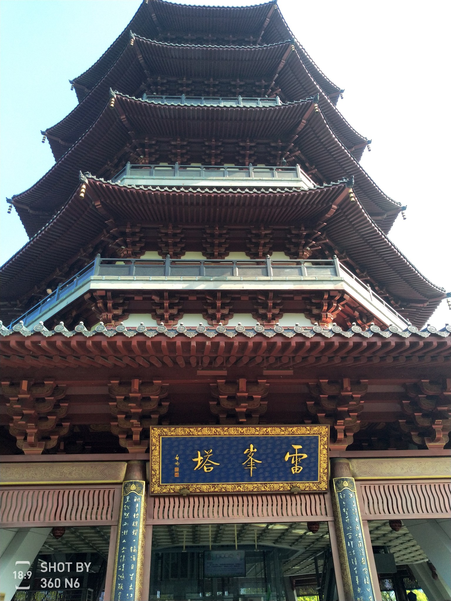 雷峰塔为中国首座彩色铜雕宝塔,雷峰夕照为西湖十景之一。
