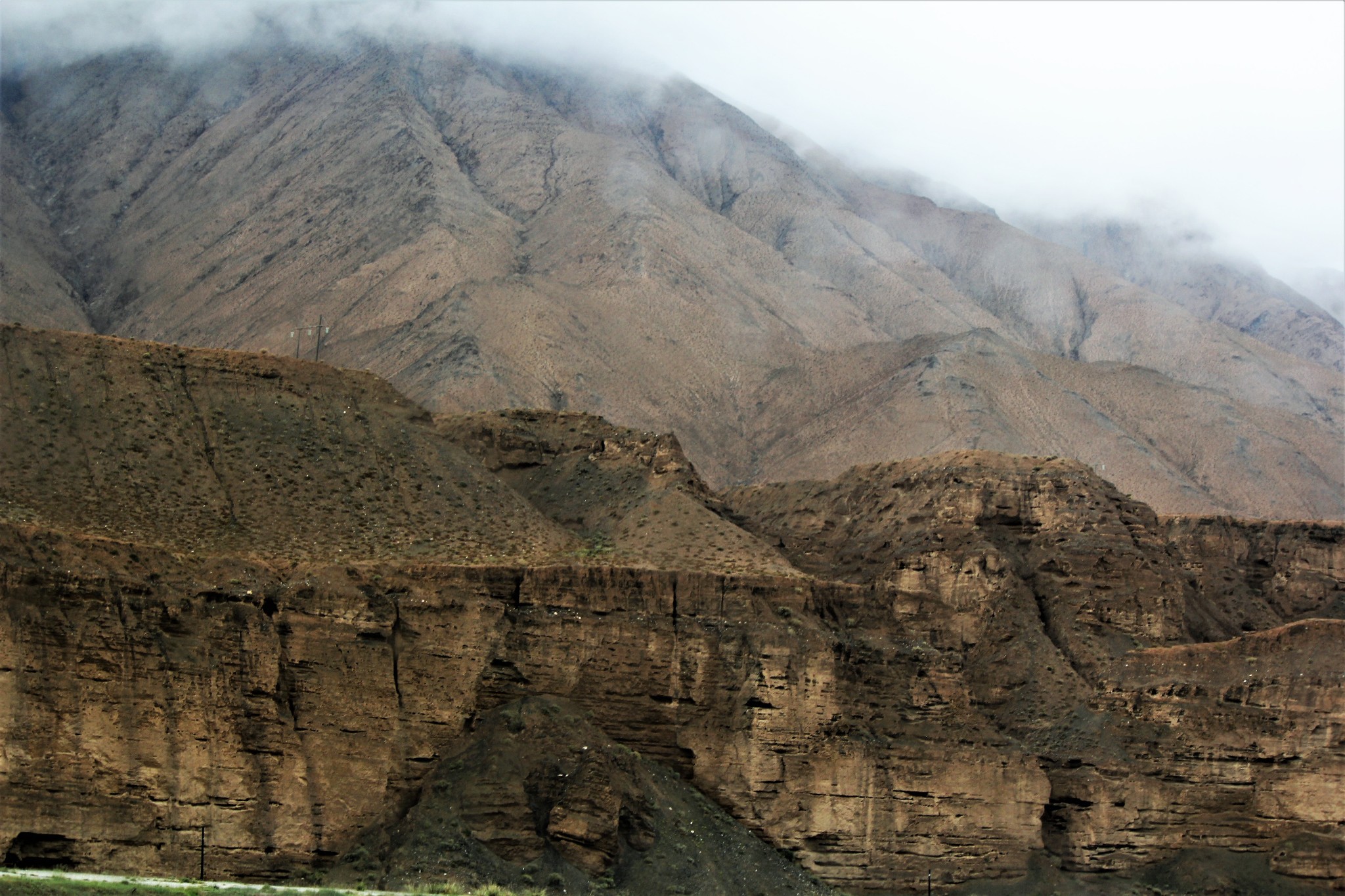 沿途所见昆仑山脉的崇山峻岭和悬崖峭壁。