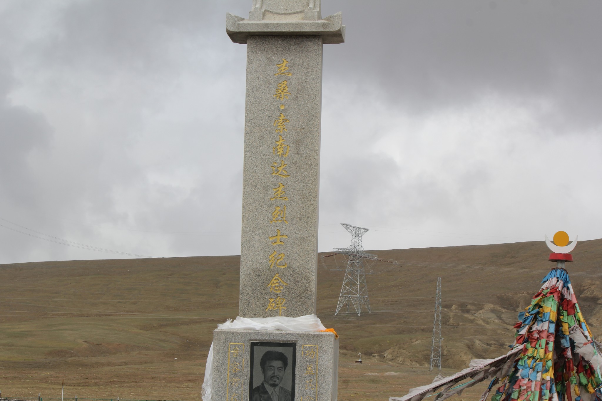 索南达杰烈士纪念碑。杰桑·索南达杰曾担任青海省玉树藏族自治州治多县县委副书记,治多县西部工委原书记。