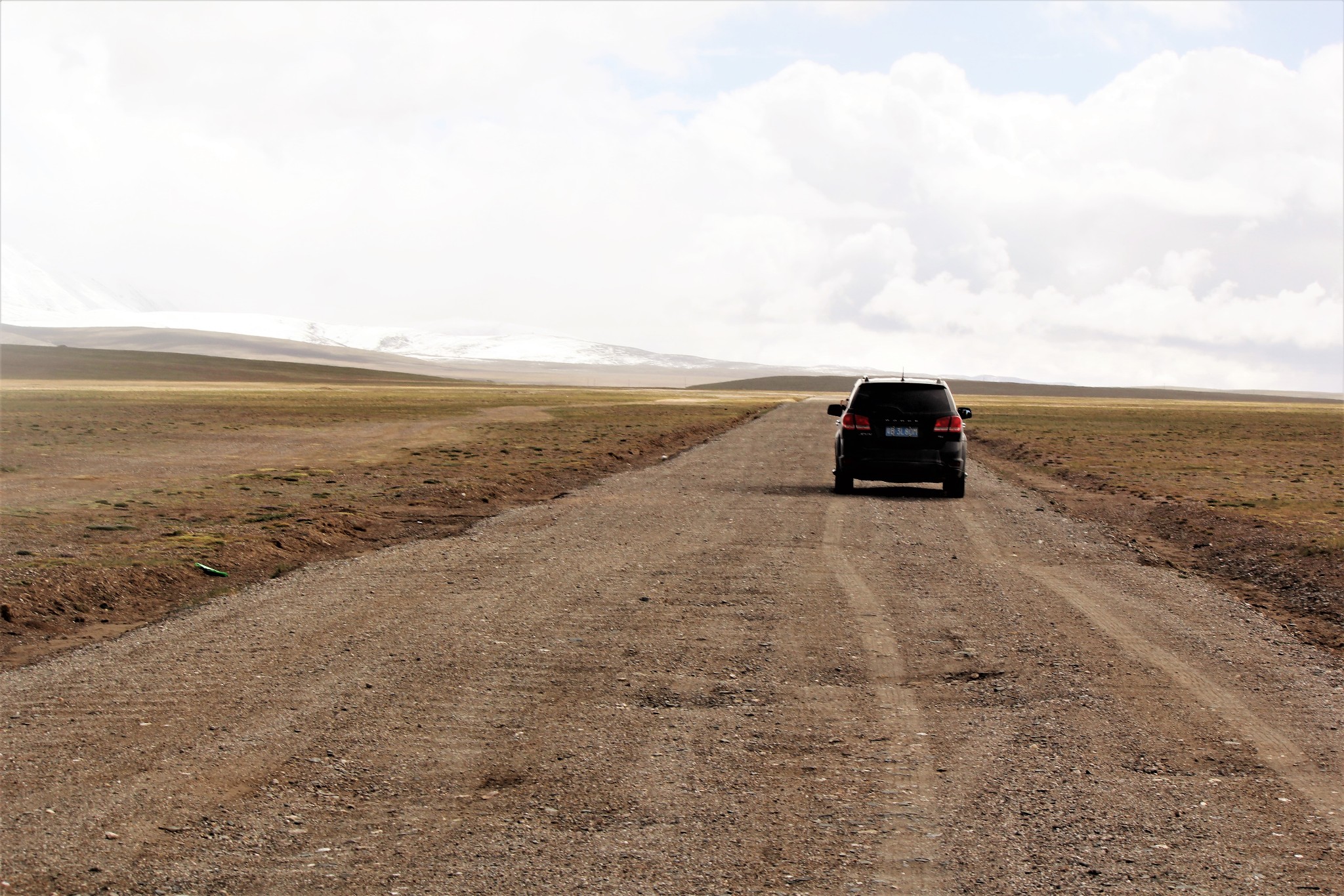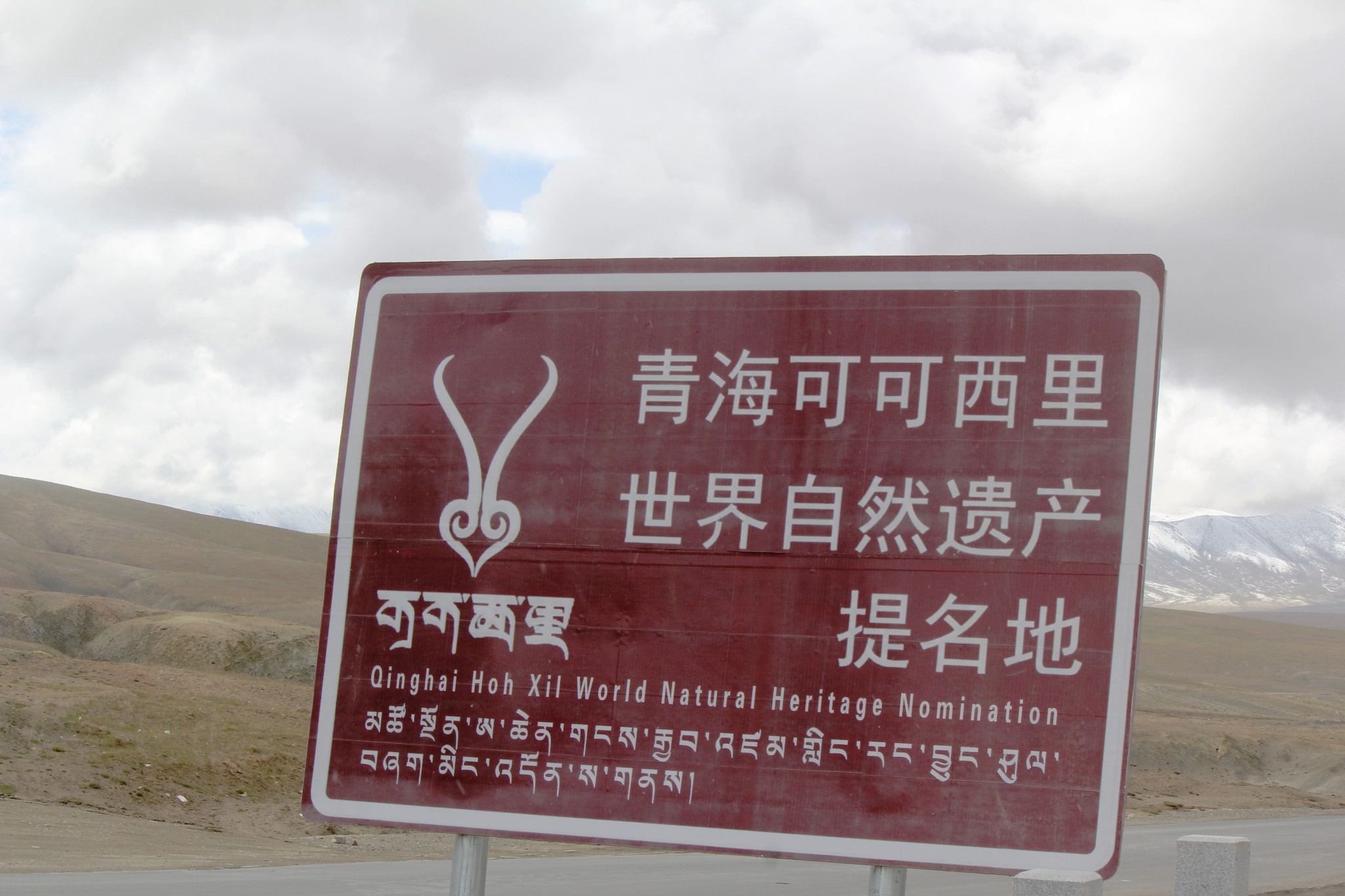 从昆仑山垭口的一些关于可可西里的标志牌可以看出来,昆仑山垭口已经属于可可西里保护区。故此我们决定要进入闻名遐迩的可可西里保护区一探究竟。继续前行不远,G109国道的西面,有一条土路,可进入可可西里核心区。但土路路口已被封闭。所幸的是从路口附近有一条被游客自驾非法压出来的路可以绕过封闭的路口,进入前往可可西里保护区的土路。于是我们循着车迹进入了前往可可西里的路程。