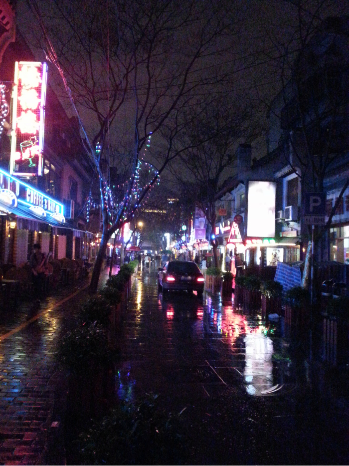 走完钟楼,去了德福巷,也是个酒吧一条街。在一个蜗牛的酒吧喝了一会酒。