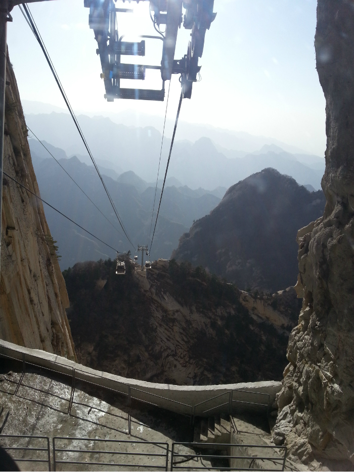 在西峰坐缆车下山,这时候17点了,缆车126,打完折的,学生证9折,比北峰贵很多,下缆车坐景区的车回市区是40,这个太坑了。时间可以的话还是建议去北峰坐缆车。折腾到市区已经18点30,下山在停车场里找到一个旅行社的大巴车,要了我们100元,把我们三人带回西安 了。爬了7个小时,累死。