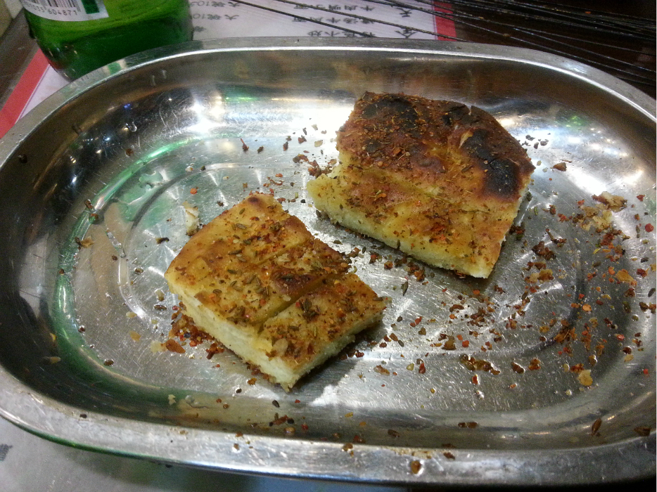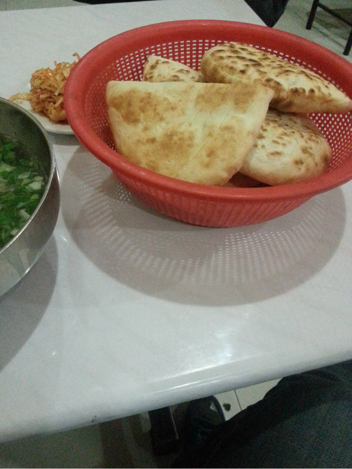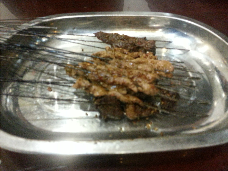 回去在宾馆对面吃的臊子面和肉串,肉串都是烤好的一把,问你要不要,还必须一次买10块钱的。