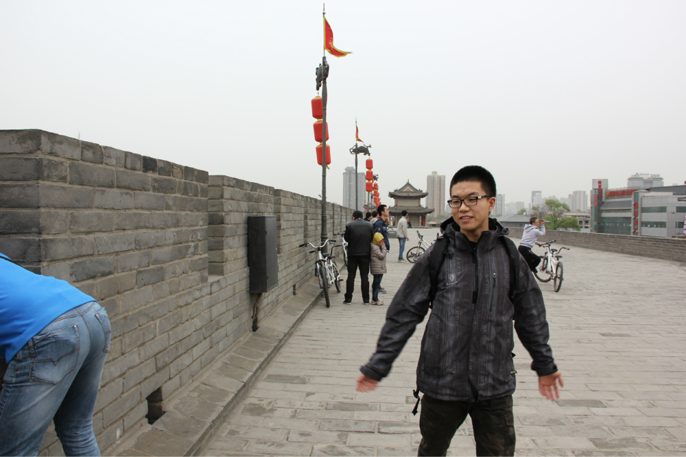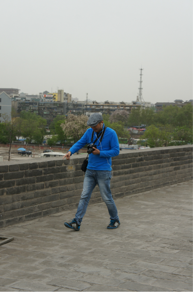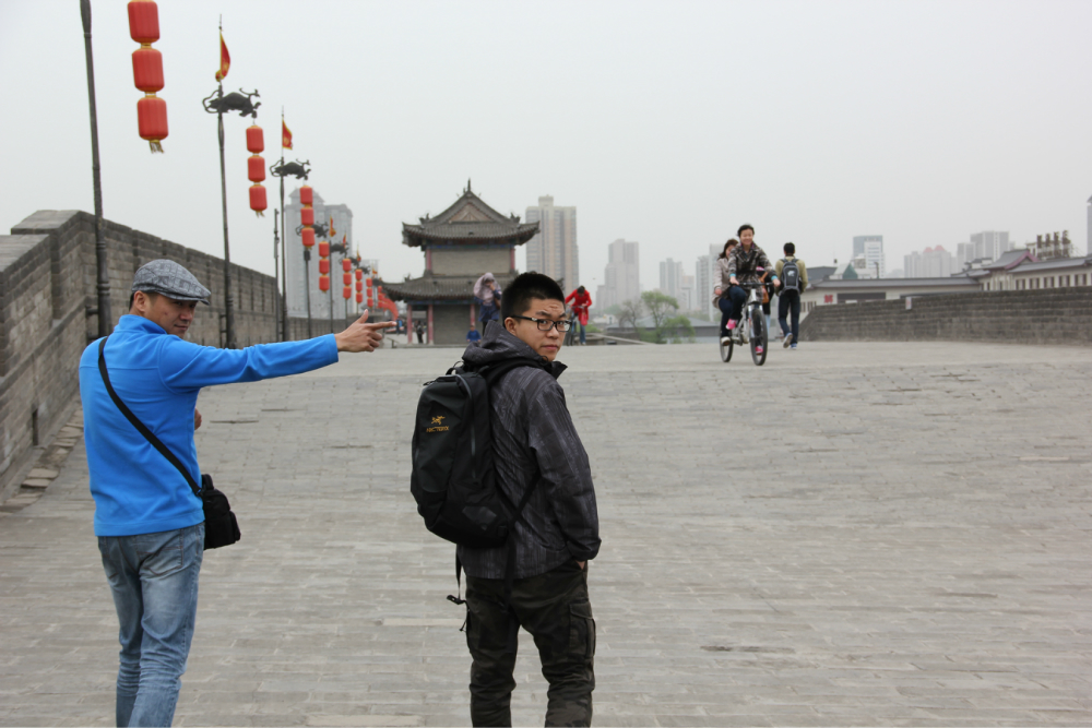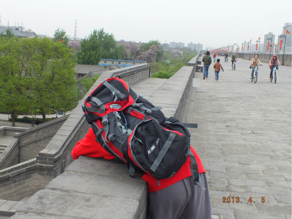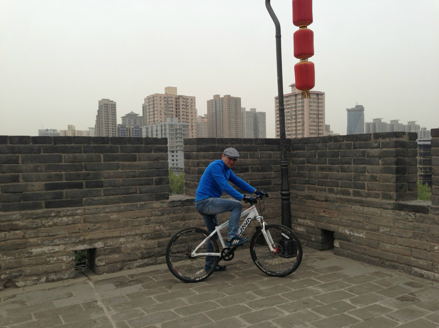 之后走到租自行车的地方,40元单人车,80元双人车。押金是200.100分钟。城墙13公里大概,有个租车点和还车点,拿好票据,在那里都可以还车退押金。骑上车3个人就飙车了,城墙凹凸不平,很颠屁股,大家慎重。