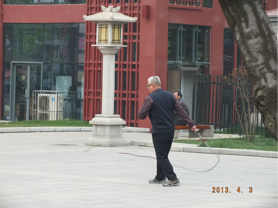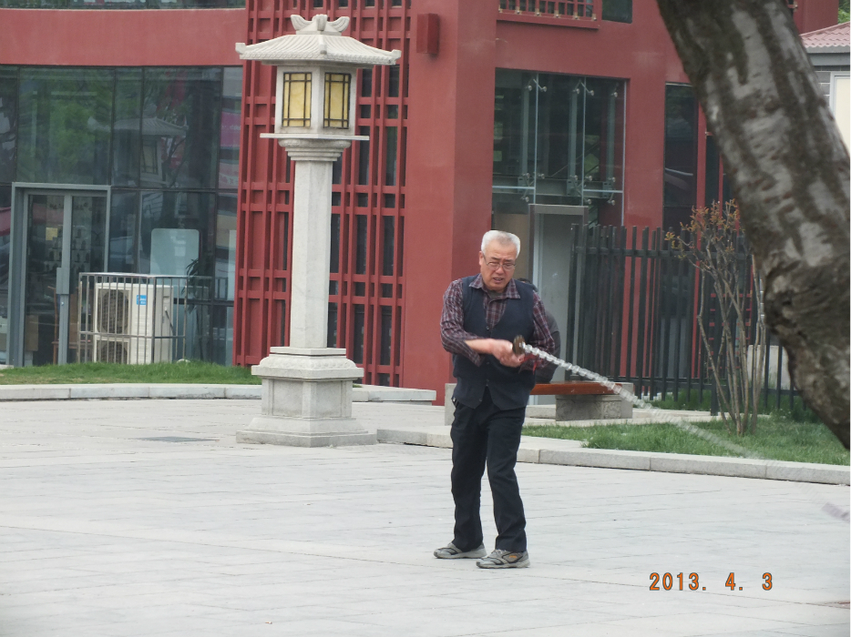 晨练大鞭子的大爷,鞭子甩的啪啪作响。