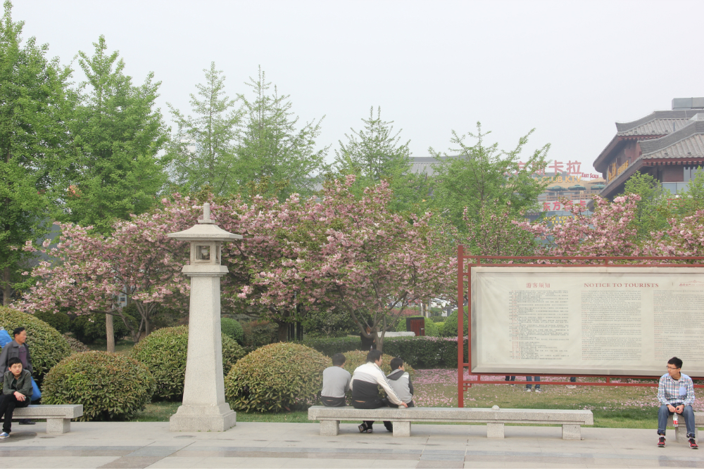 大雁塔 出来去青龙寺 ,不要门票,是樱花园什么的,记不太清了,西安 的门票实在太多了,好在有学生证,各位驴友出去可以的话还是要办个学生证,在西安 起码可以省300+的,成本只要40,很划算。