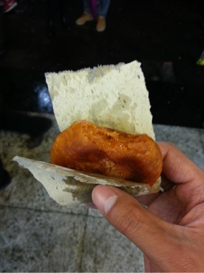 勉强吃了一个这个,柿子饼,油炸的,好多都是卖这个的,里面的馅太甜,不是很喜欢。