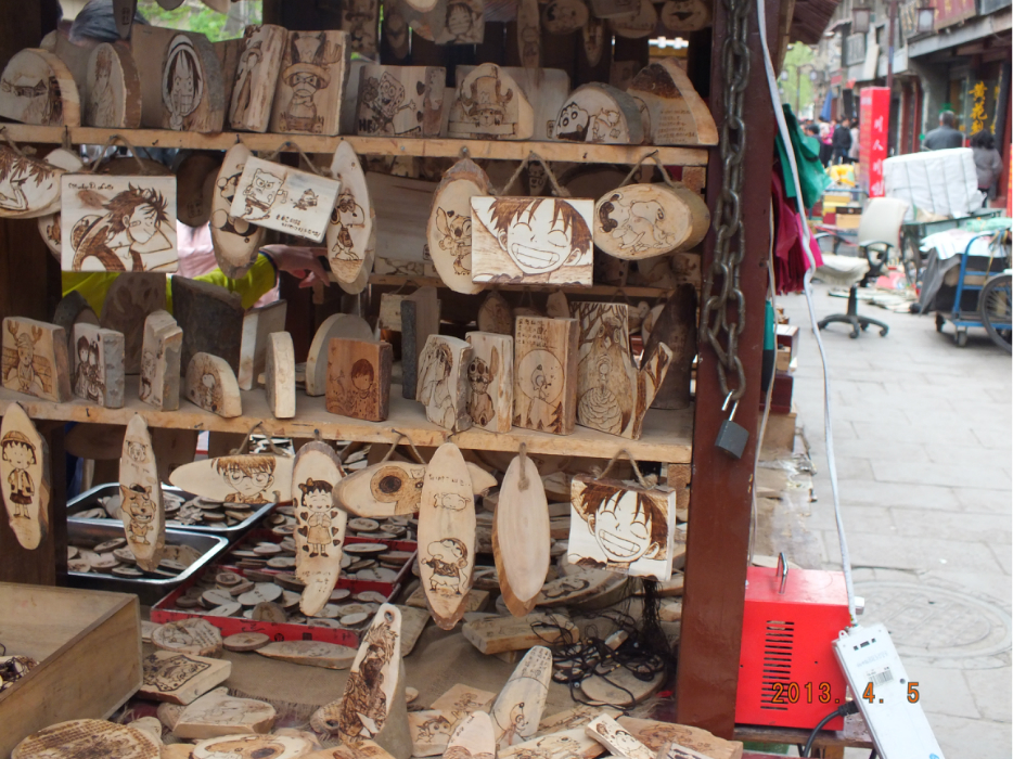 之后南门下去,湘子门对面的一条古巷,名字忘了。都是卖文房四宝的比较多。