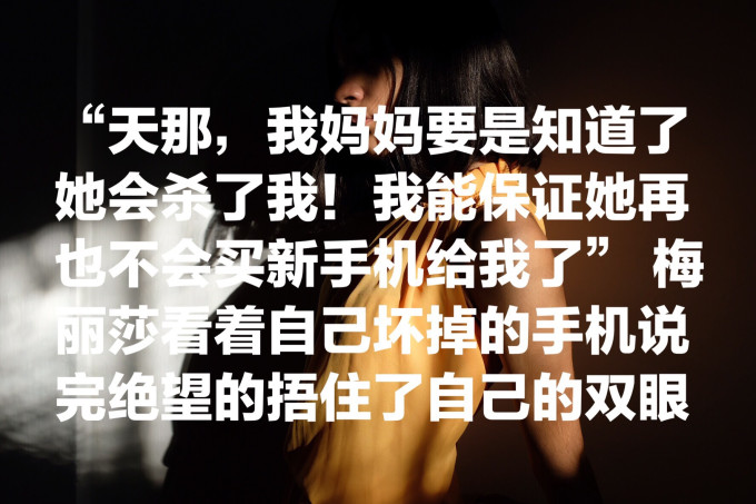 “天那,我妈妈要是知道了她会杀了我!!!我能保证她再也不会买新手机给我了” 梅丽莎看着自己坏掉的手机说完绝望的捂住了自己的双眼快要哭了出来。