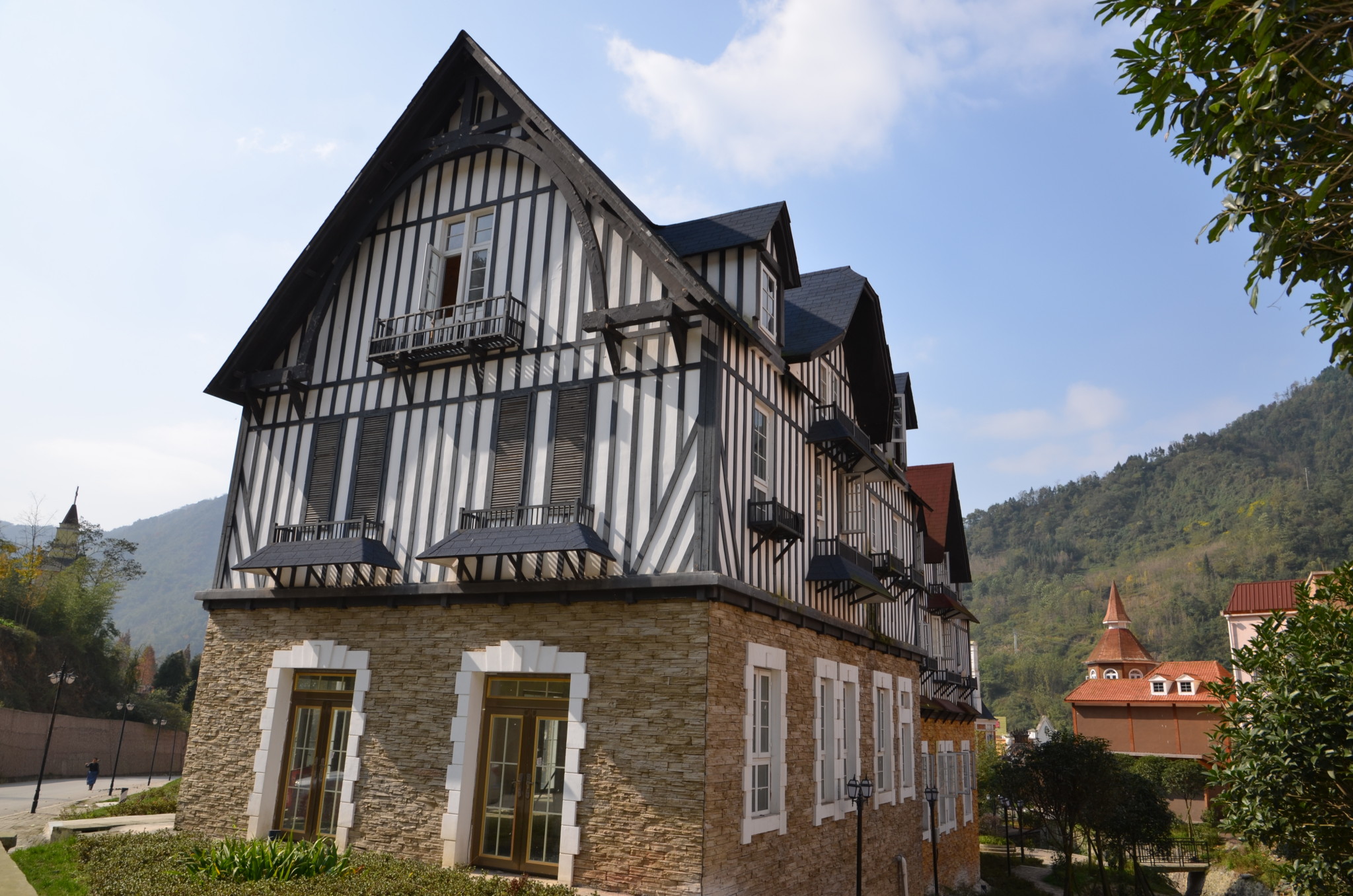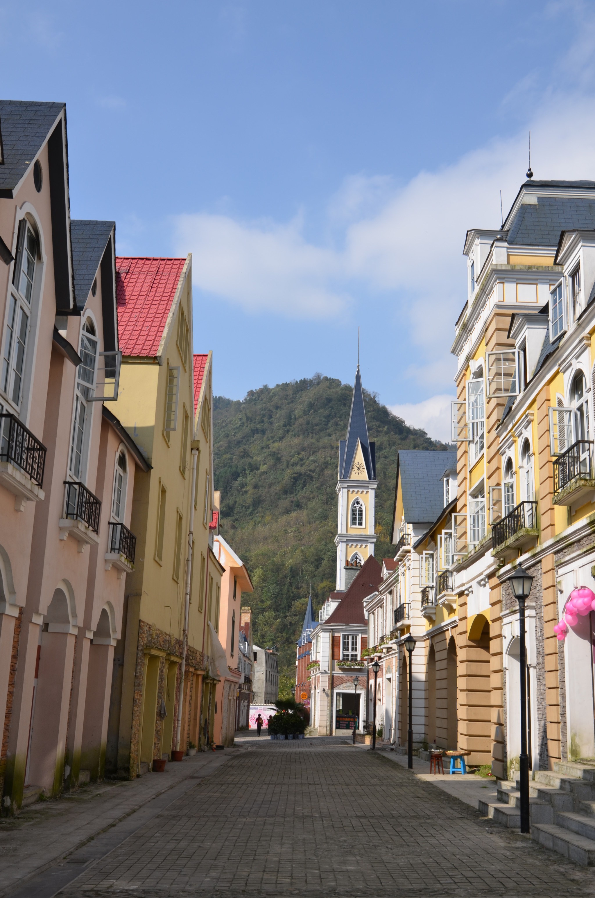 白鹿镇是个小镇,打造的欧洲风情街,河边喝茶环境不错,青山绿水。午饭后到丹景山去登山,山上的牡丹花已经榭了,还有一些黄杜鹃,还是很美!