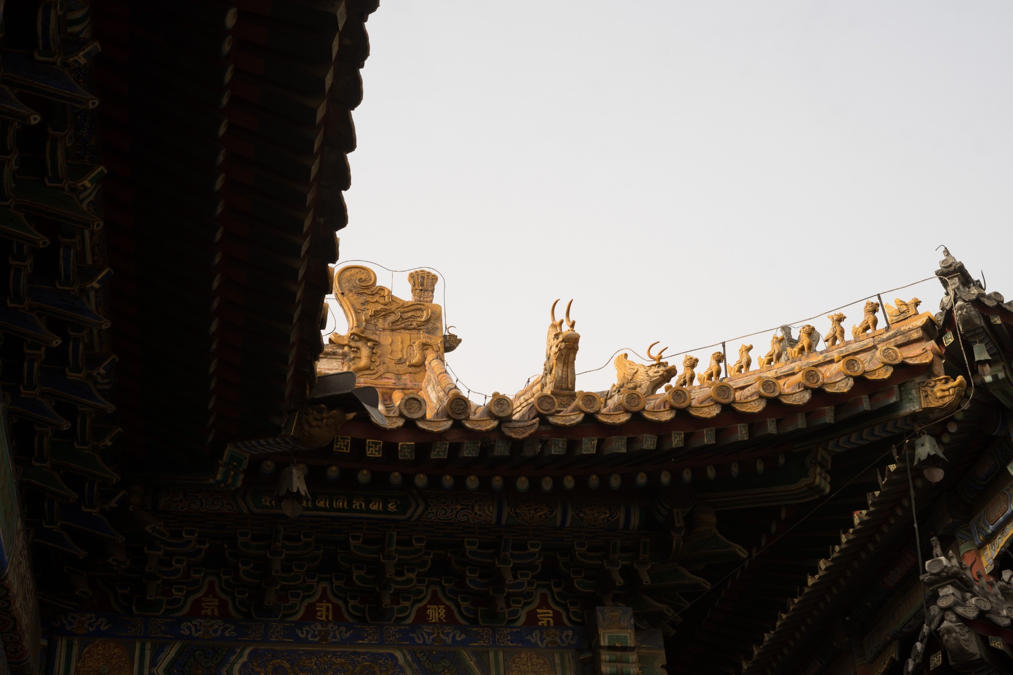 雍和宫里只有为数不多的几个正殿的瓦和小狮子们是黄色,据说雍正当年是亲王,没有资格用黄色,所以宫里的砖瓦用的绿色,雍正驾崩后棺柩层停放于此,所以主殿改了黄色。