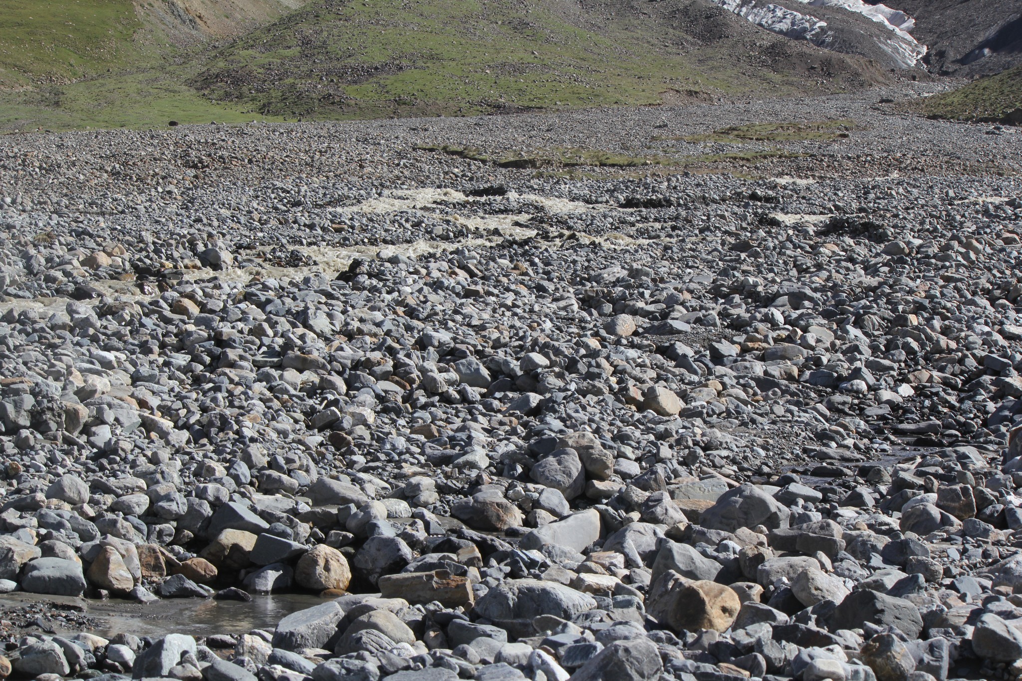 我们驱车前往玉珠峰方向,但前方已无路可走,同时西大滩实际就是一个乱石滩,我们只得将车停下,我和同伴徒步前往玉珠峰冰川。