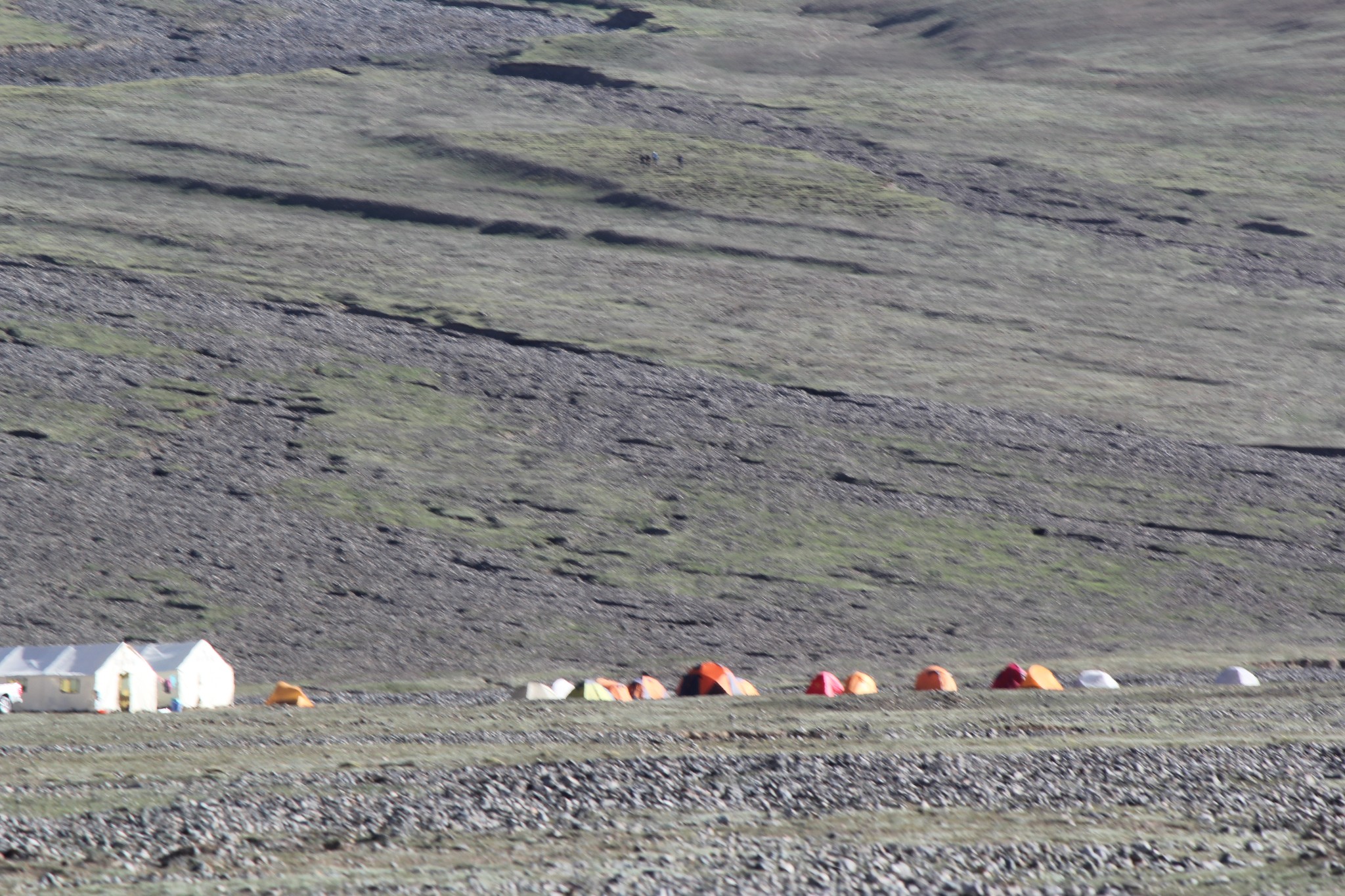 2017年8月11日上午在可可西里游荡两个多小时后,草草在车上吃了些自带干粮,权当中餐。接着我们一行人沿无名路返回青藏线,又翻越昆仑山垭口,来到了位于青藏线南面的西大滩,试图到达玉珠峰冰川,与玉珠峰冰川近距离接触。西大滩位于玉珠峰的北侧,是攀登玉珠峰北坡线路必经之地。 西大滩海拔4200米。西大滩是昆仑山脉山谷戈壁的一部分,东西走向,与东大滩、黑刺滩相连。长度近100公里。宽度3公里到10公里不等。滩上估计曾经可产昆仑玉,西大滩遍地都有被寻玉人破过遗弃的原石。西大滩也是玉珠峰大本营的所在地。