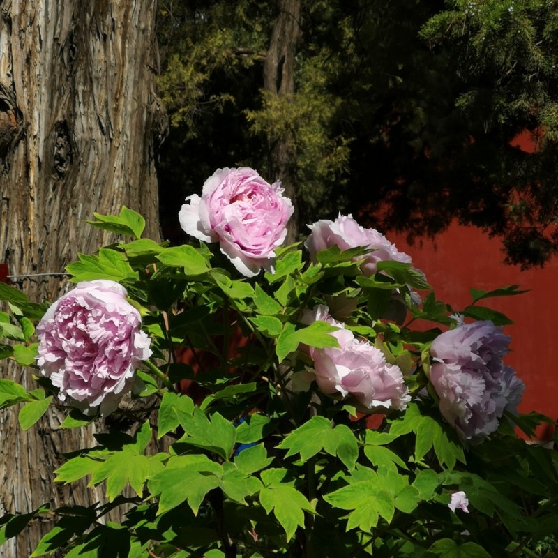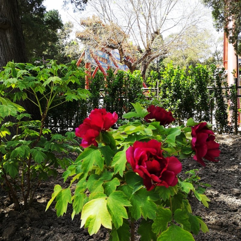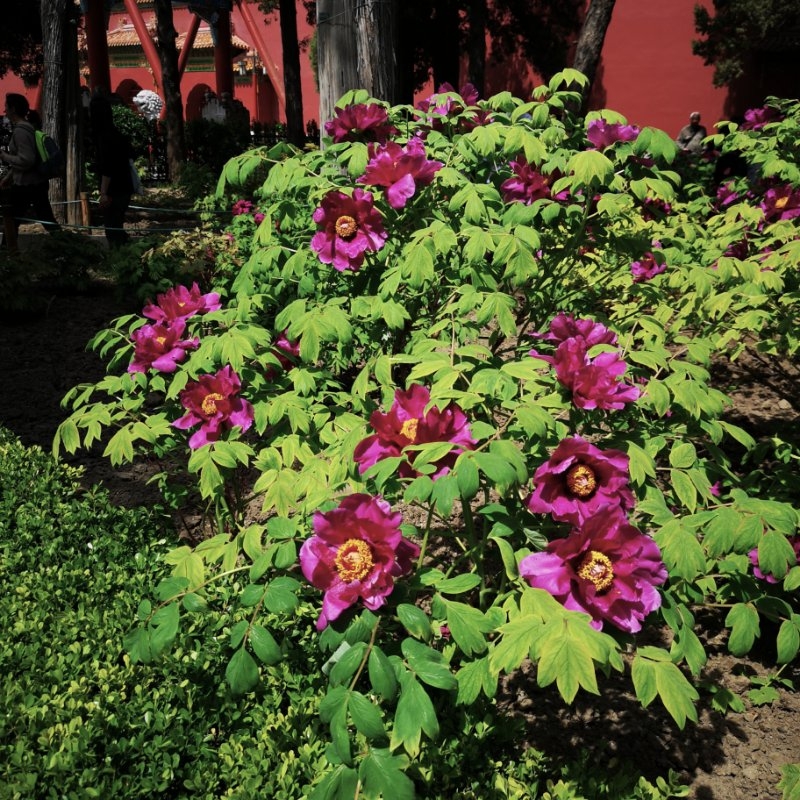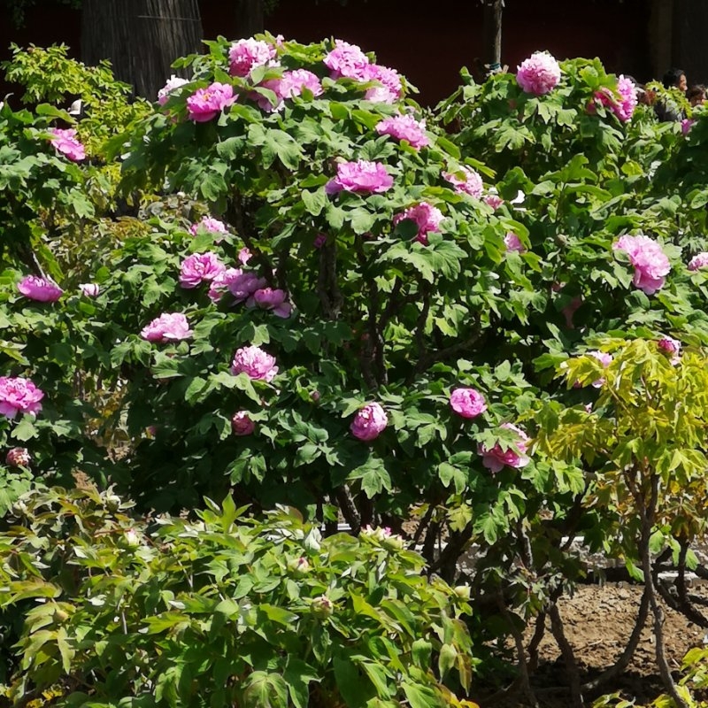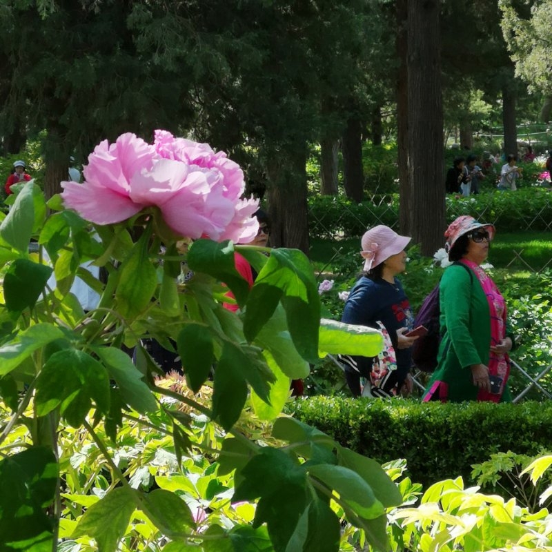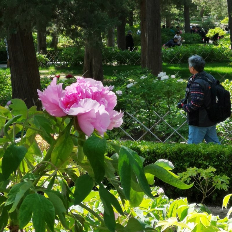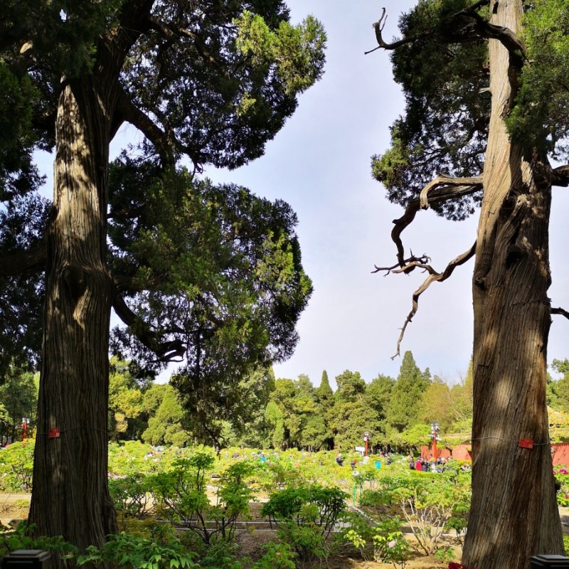 今天来是为看牡丹的,赶紧找找牡丹在哪儿?刚进东门往北走,有高大的二将军柏,柏下就是大片的牡丹地。
