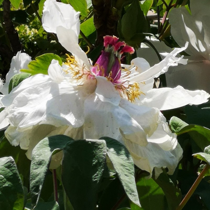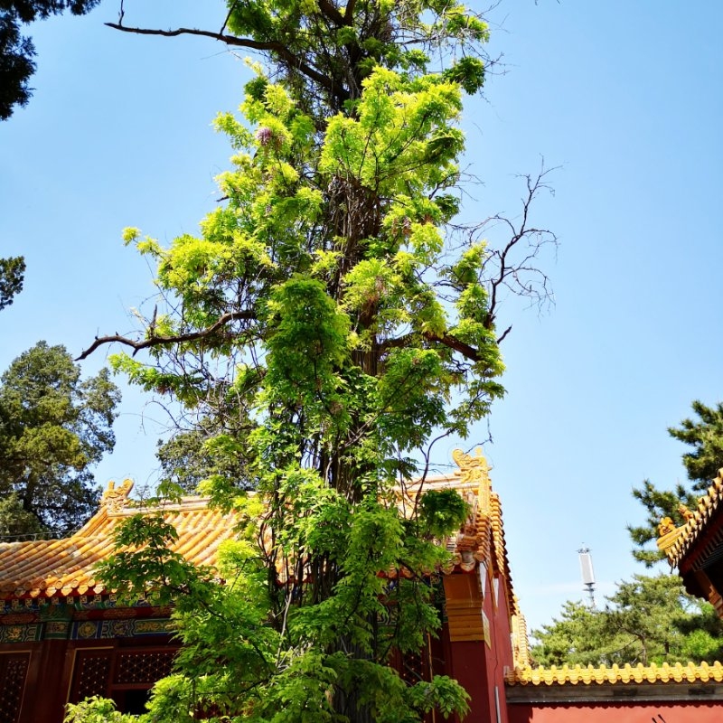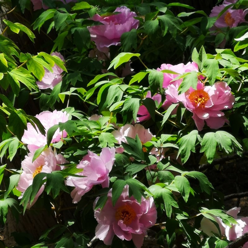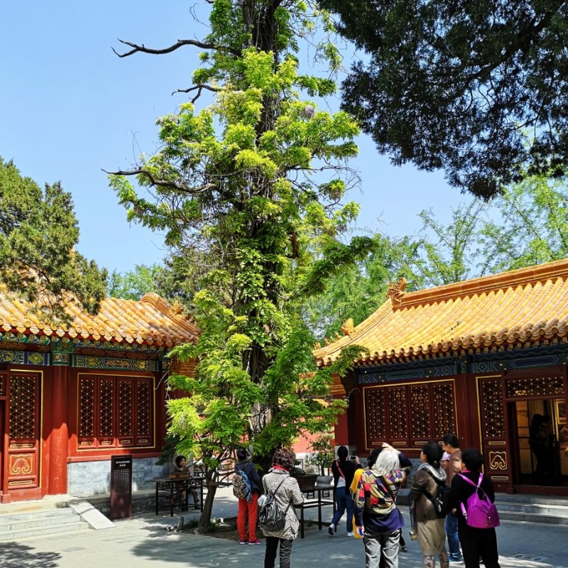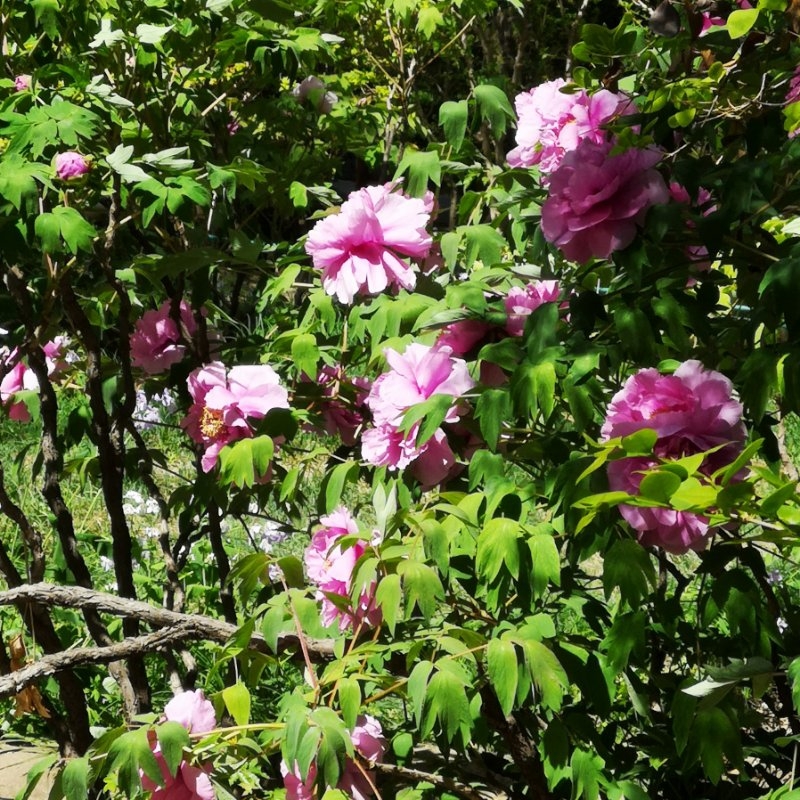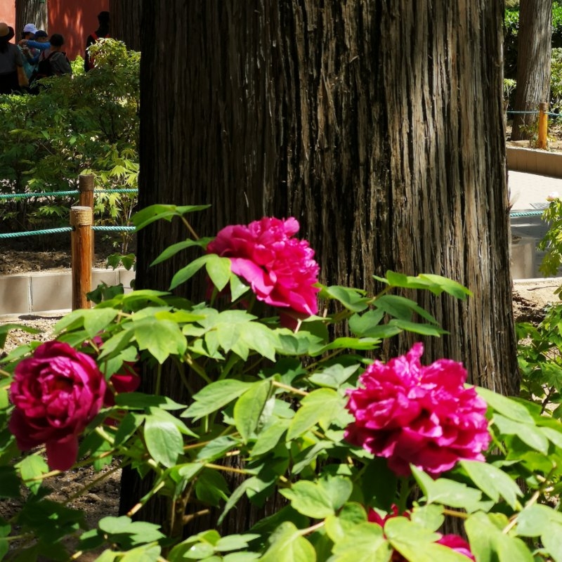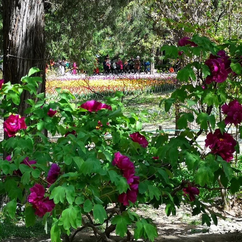 今天来是为看牡丹的,赶紧找找牡丹在哪儿?刚进东门往北走,有高大的二将军柏,柏下就是大片的牡丹地。