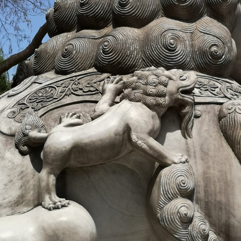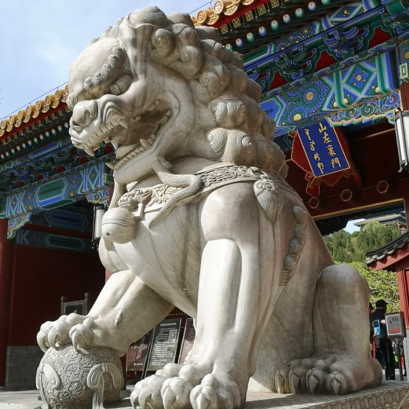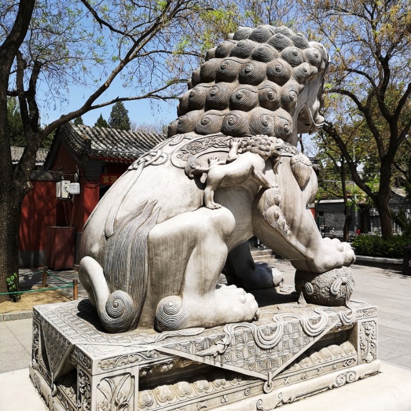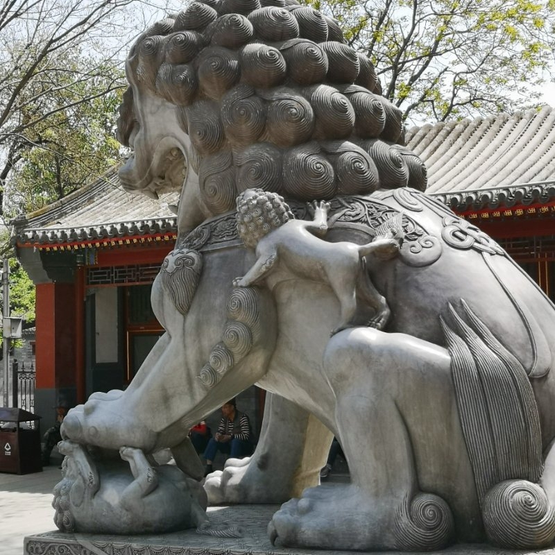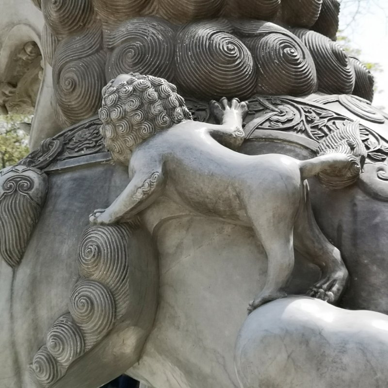 景山东门,就是山左里门,门外的石狮子很有特色,北边是雄狮,南边是雌狮,身上都挂着萌萌哒的小狮子。