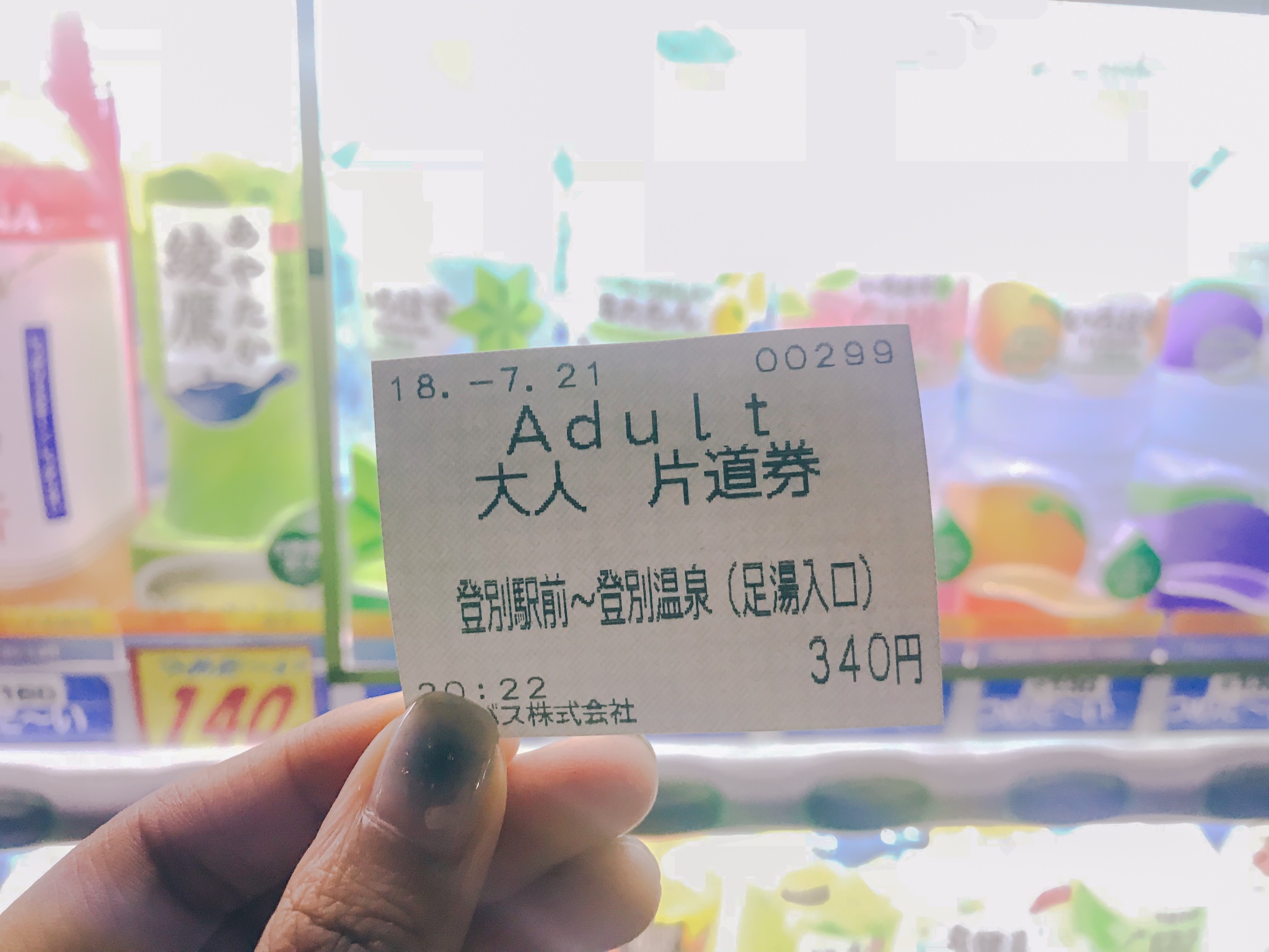 在登别车站就有循环巴士的自动售票机,上面有直接中文写着的“登别温泉街”,直接按了投币就行,340円一个人。