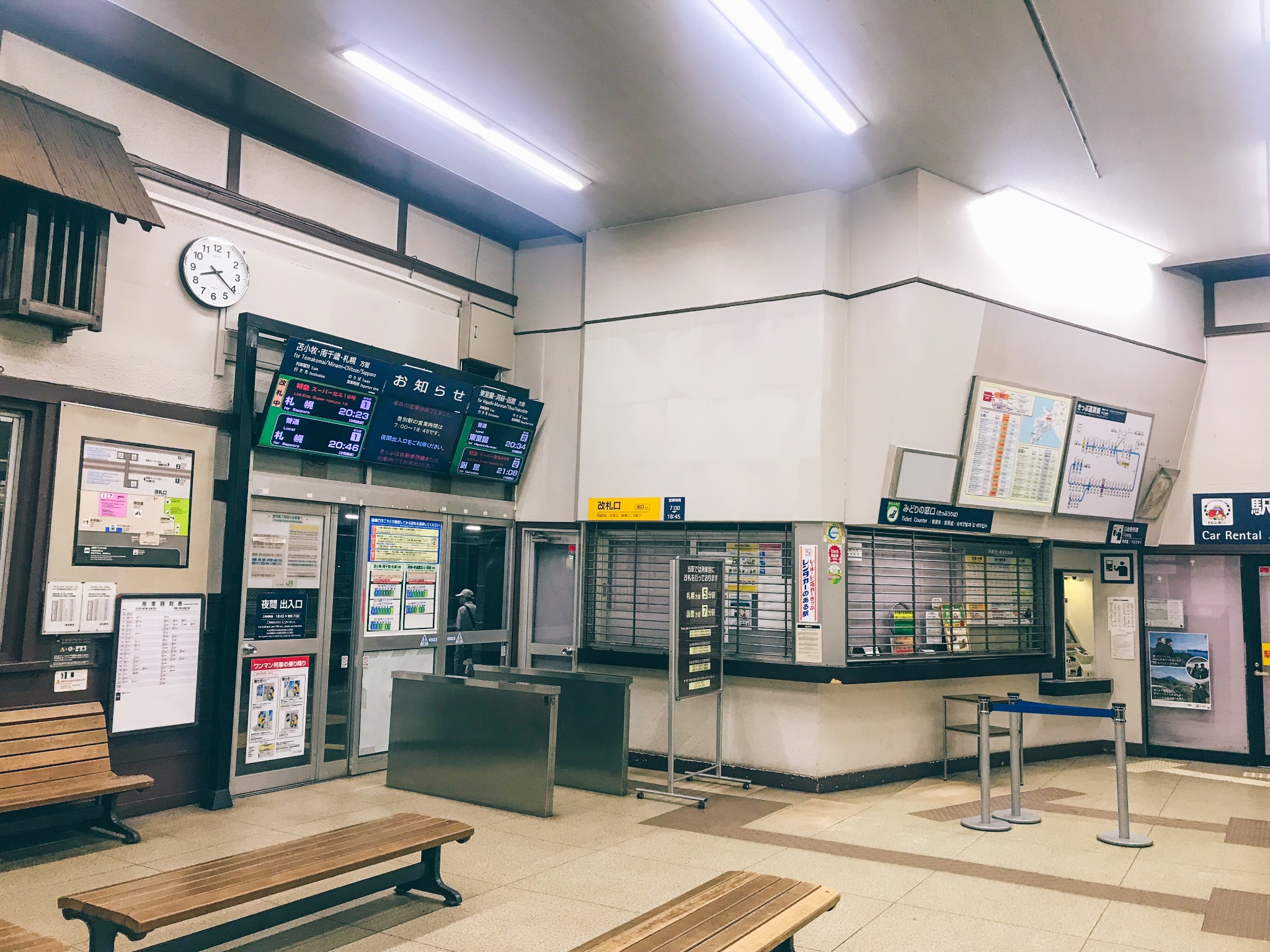 整个登别车站也特别的小巧,工作人员全都已经下班了,自己推开门出站就行了。