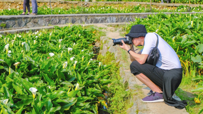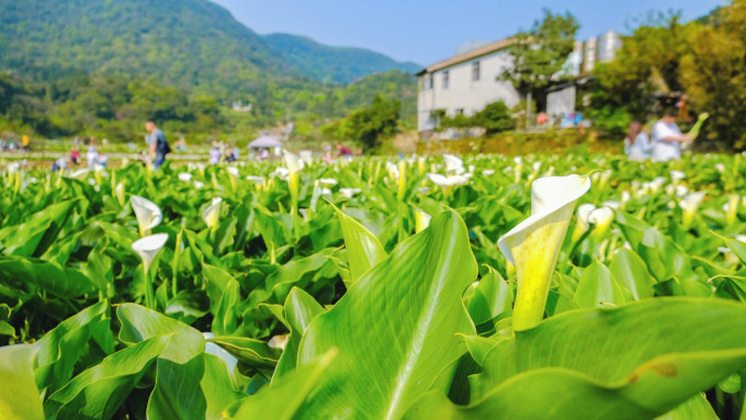 竹子湖农场分布于顶湖、下湖、东湖与马槽,各有其特色景观,而每个区域,都分布着不同的海芋园,每个海芋园都有不同的农场主,开花日期也略有前后。每年春天,竹子湖都会举办海芋季,今年以“数数海芋”为主题,活动从3月29日至4月28日,而海芋赏花期会延续到5月底。出发之前,查了很多的资讯,会把阳明山安排进行程,就是为了遇见海芋,而庆幸,也真的就赶上了。