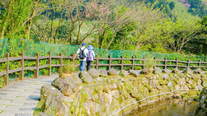 从台北市区可以坐公交一直到阳明山总站下车,之后再转公交进入竹子湖,但因为花季期间,游客非常多,公交很难等,所以可以选择坐的士进入竹子湖,公交站旁有很多拉客的的士大叔,从公交总站到竹子湖有蛮长一段距离,的士拼车100新台币,直接送到竹子湖的入口——就是这座桥这里。山谷被茫茫的雾气笼罩得很有诗意,两侧花开,满眼都是春天的模样。