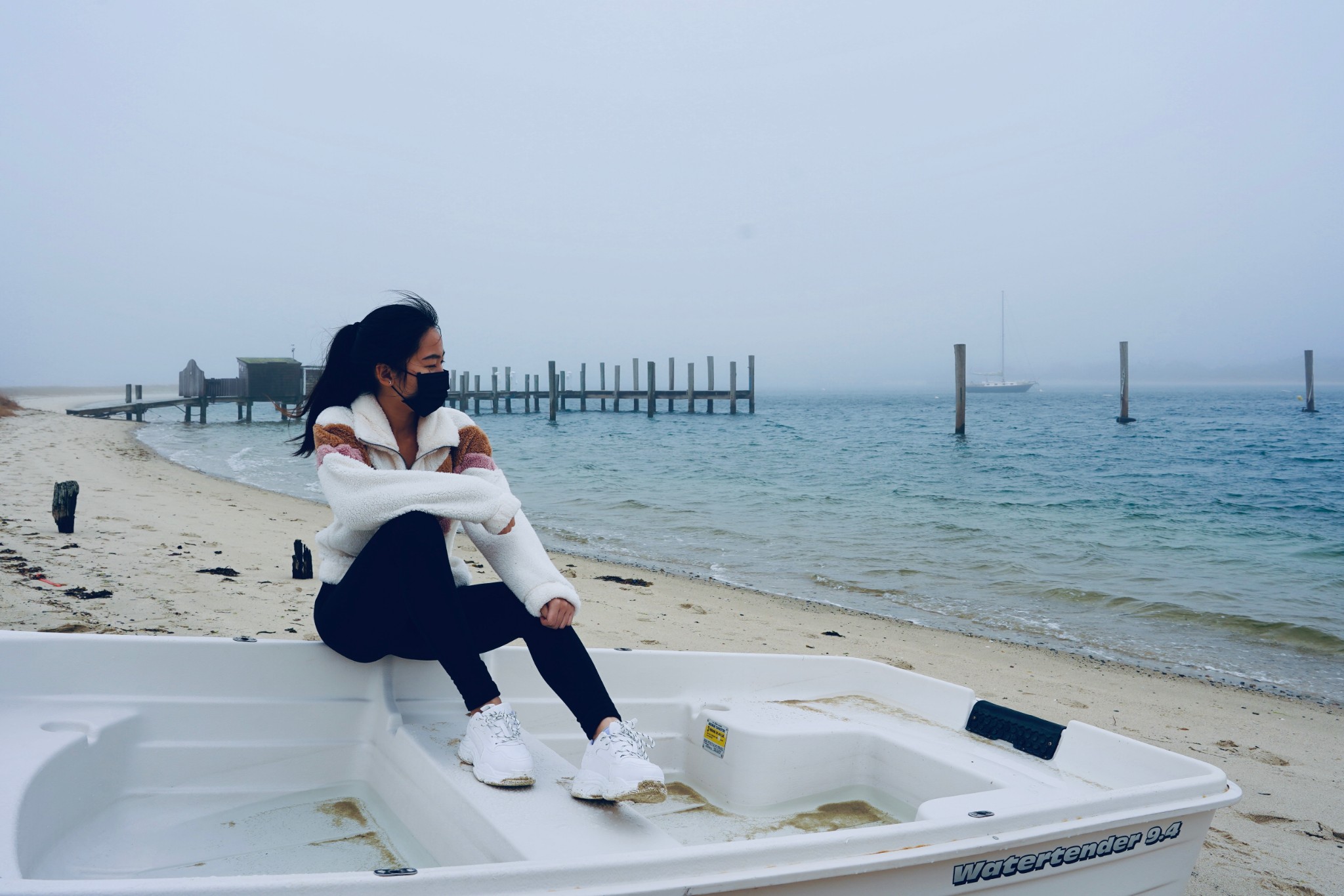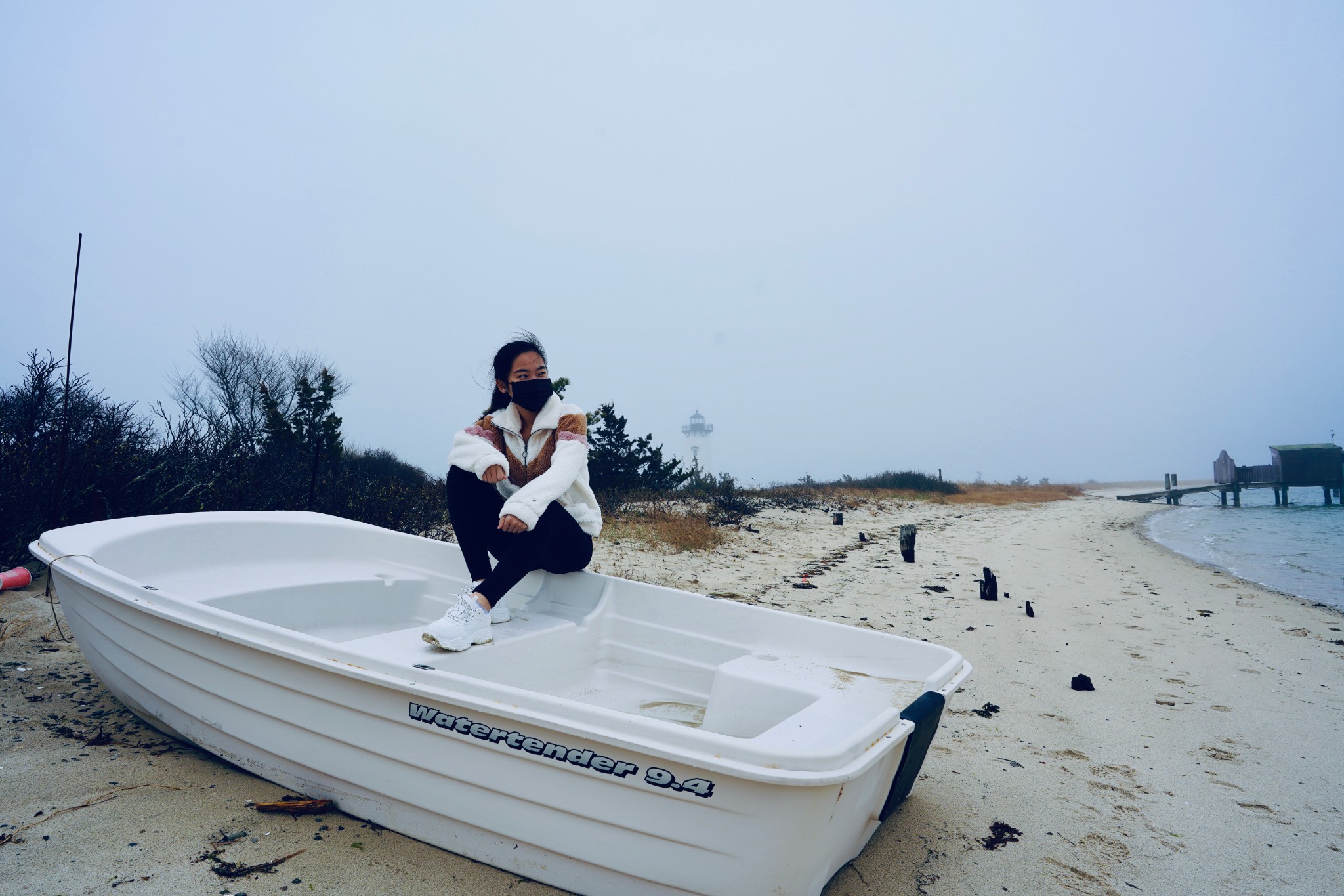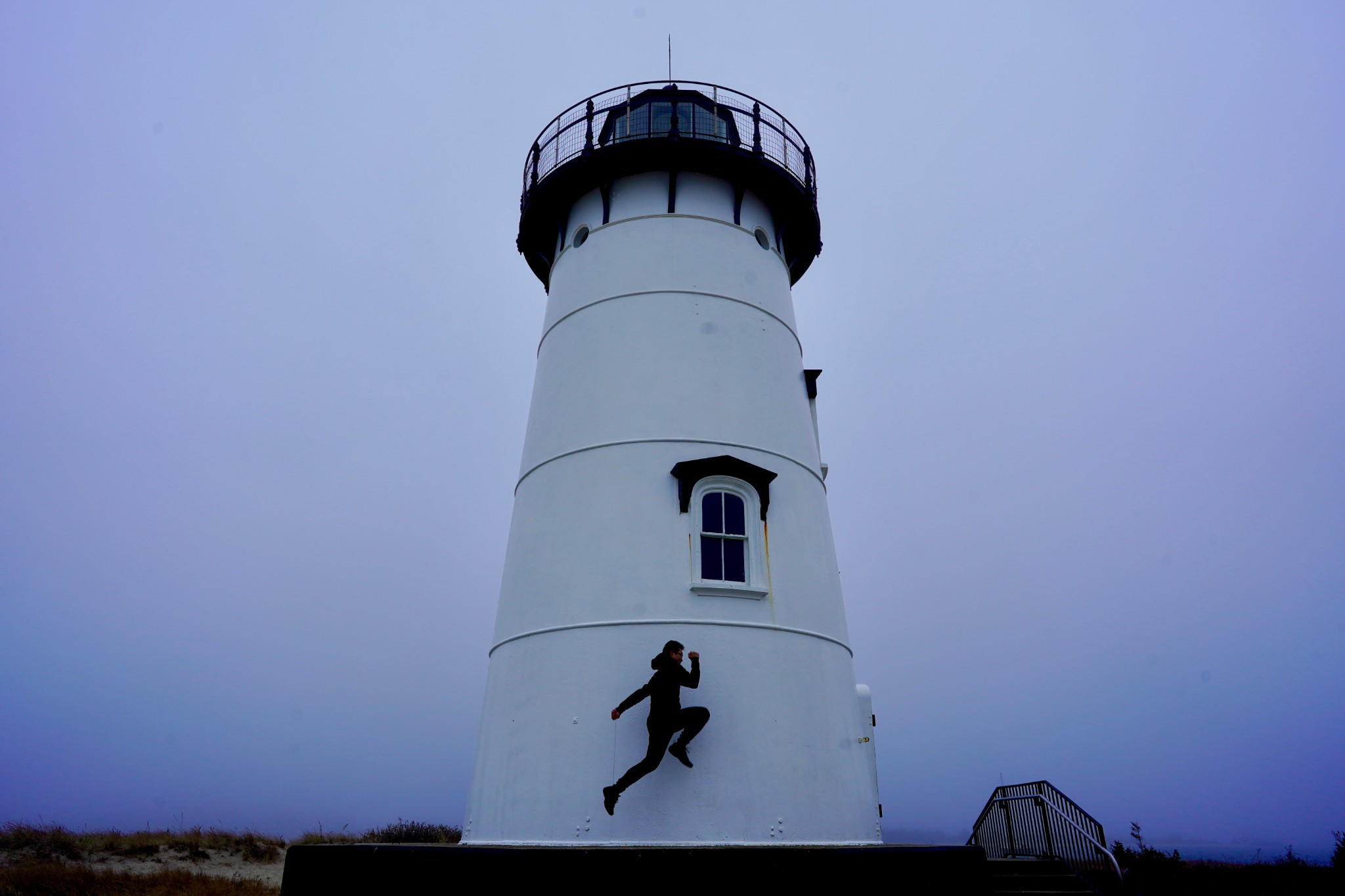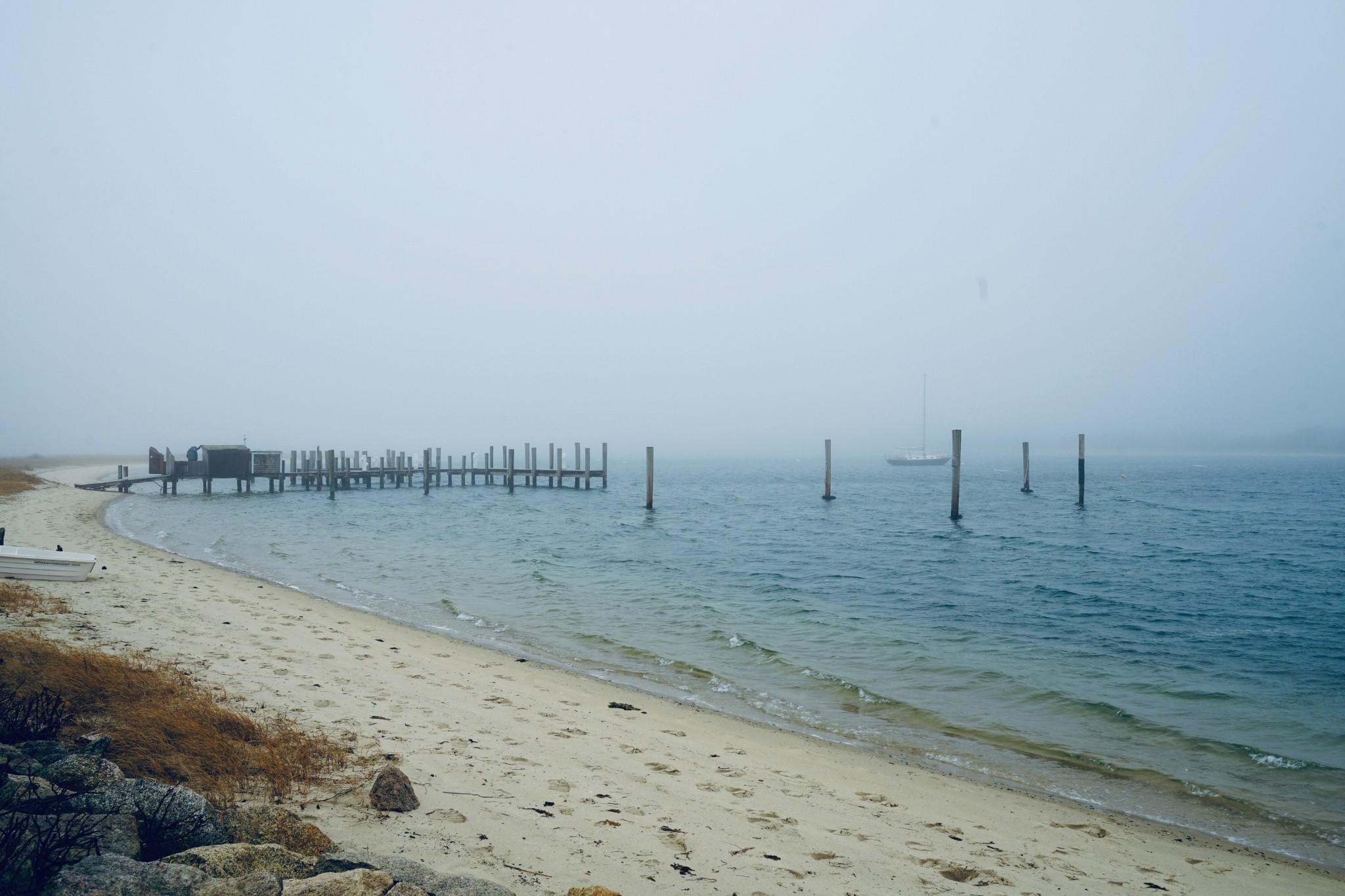 Martha's Vineyard岛上一共有五座灯塔,我们就挑了一个离我们住的地方最近的去。这座灯塔叫Edgartown Lighthouse,座落在的沙滩就叫Lighthouse Beach。我现在为了写游记去官网上研究了才发现,这个灯塔刚好是五座里面我觉得最美的一座。我们去的时候起着大雾,还有点儿细细的毛毛雨,雾中的灯塔仿佛是海市蜃楼,莫名的有种被悲壮的感觉