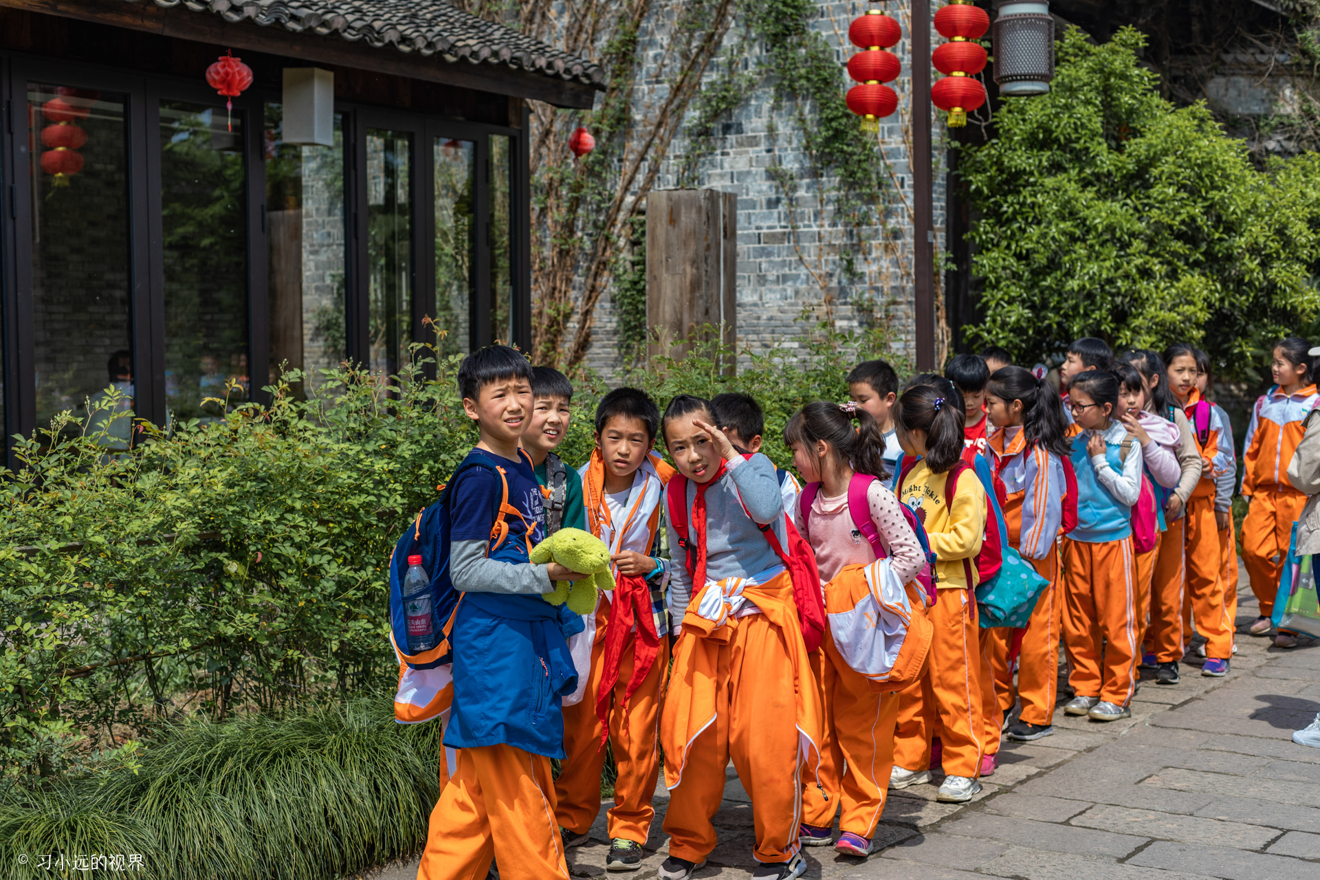 正值春季郊游的时段,这里也经常出现清一色的小朋友郊游队伍,虽然这些古建筑没有吸引他们的目光,不过这年轻小孩子和古老建筑的对话却一直在进行着。