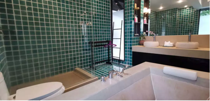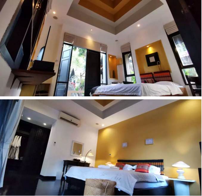 豪华池景别墅套房配置一个两米大床卧室,一个1米5大床房间,面对泳池,拥有网络电视,室内保险箱,蓝牙音响,免费WiFi,独立控制的空调,迷你吧,冰箱,带浴缸的宽大浴室,优质的客房服务。
