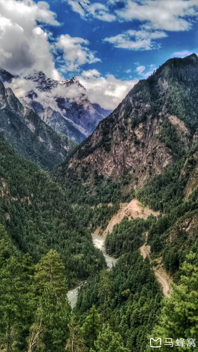 易贡乡至八盖乡,今天路况很差。左边是悬崖峭壁,右边是深谷激流,且土路路况,路基松塌,随处可见塌方痕迹。这一段路胆战心惊,八盖乡,身处高山峡谷中,山体挺拔俊俏,高耸入云,谷底河流,至清且水势极大,河谷两边植被丰富,是保护极好的原始密林,几人才能合抱的参天大树随处可见。