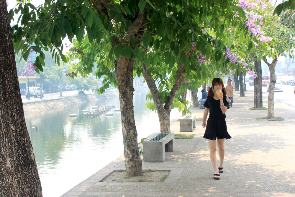 我们住的地方位置在屏河附近,晚上这里是清迈 最美的地方,