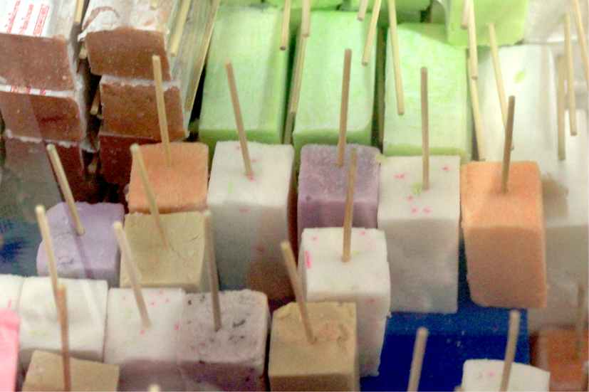 卖相很有食欲的冰棍儿,我们吃了一根橘黄色的奶茶味的