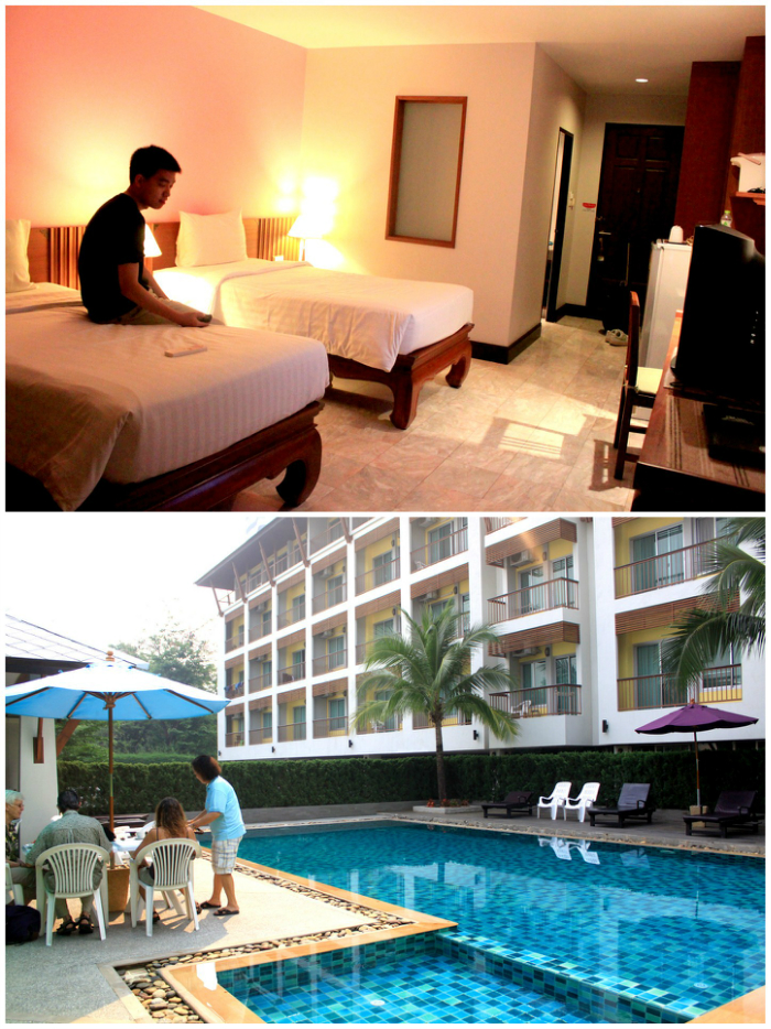 还有,一定要找一家有游泳池的!!因为清迈 12点--3点非常热,这段时间不适宜在户外活动,在游泳池里游个泳度过下午 非常合适。