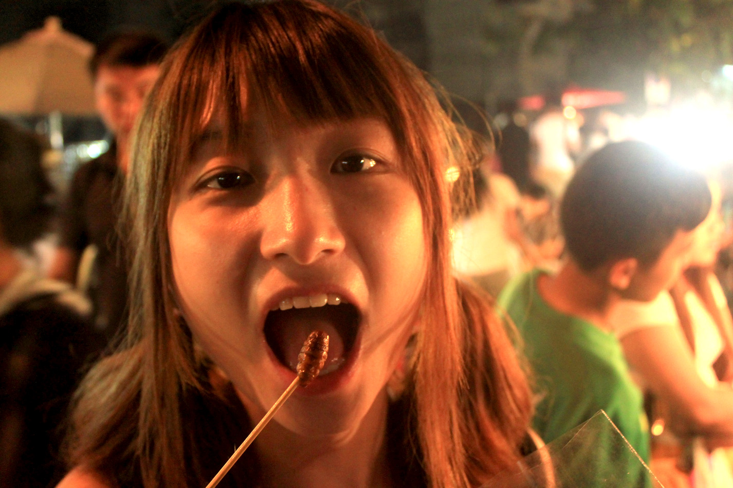 另外,去夜市不妨尝一下虫子!我鼓起勇气吃了几只,具体味道,尝了才知道!