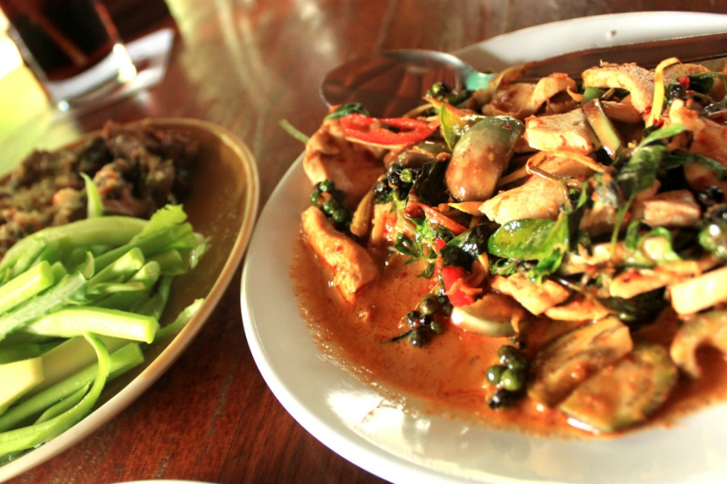 泰国 最头疼的事情就是点菜,几乎所有餐厅的菜单都只有文字--泰语和英文翻译。 所以我们只能凭着感觉点菜。 这顿午饭就点失败了。。