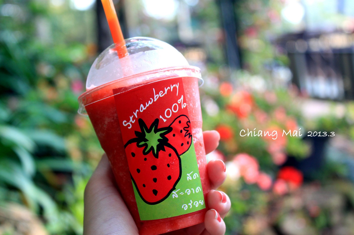 里面有一个小卖部,卖新鲜的草莓冰沙, 100%草莓鲜榨, 10泰铢, 2块人民币左右。