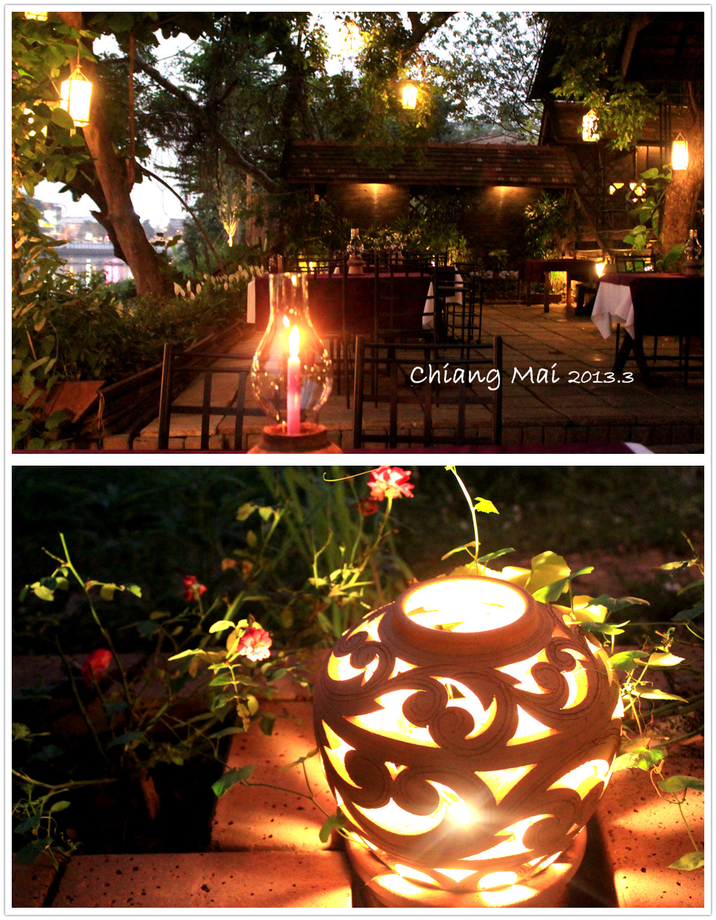 随便进了一家餐馆,完全冲着这些烛光进来的。清迈 河边最著名的是Good View 餐厅,