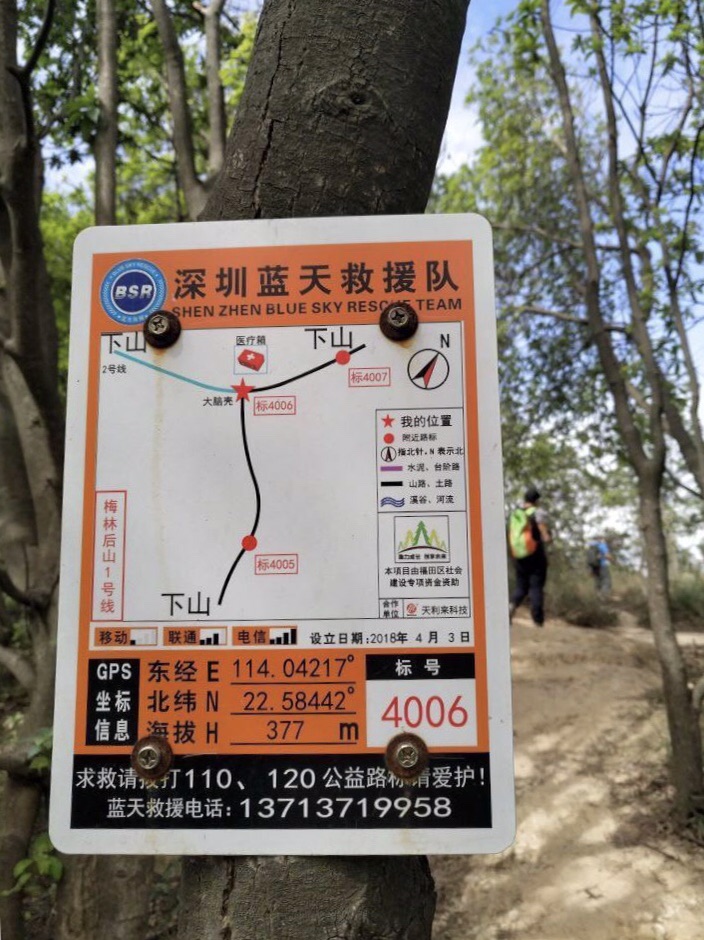 山上蓝天救援队标识牌