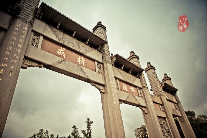 迎面的胜境门楼糅合了徽式建筑的古朴端庄。