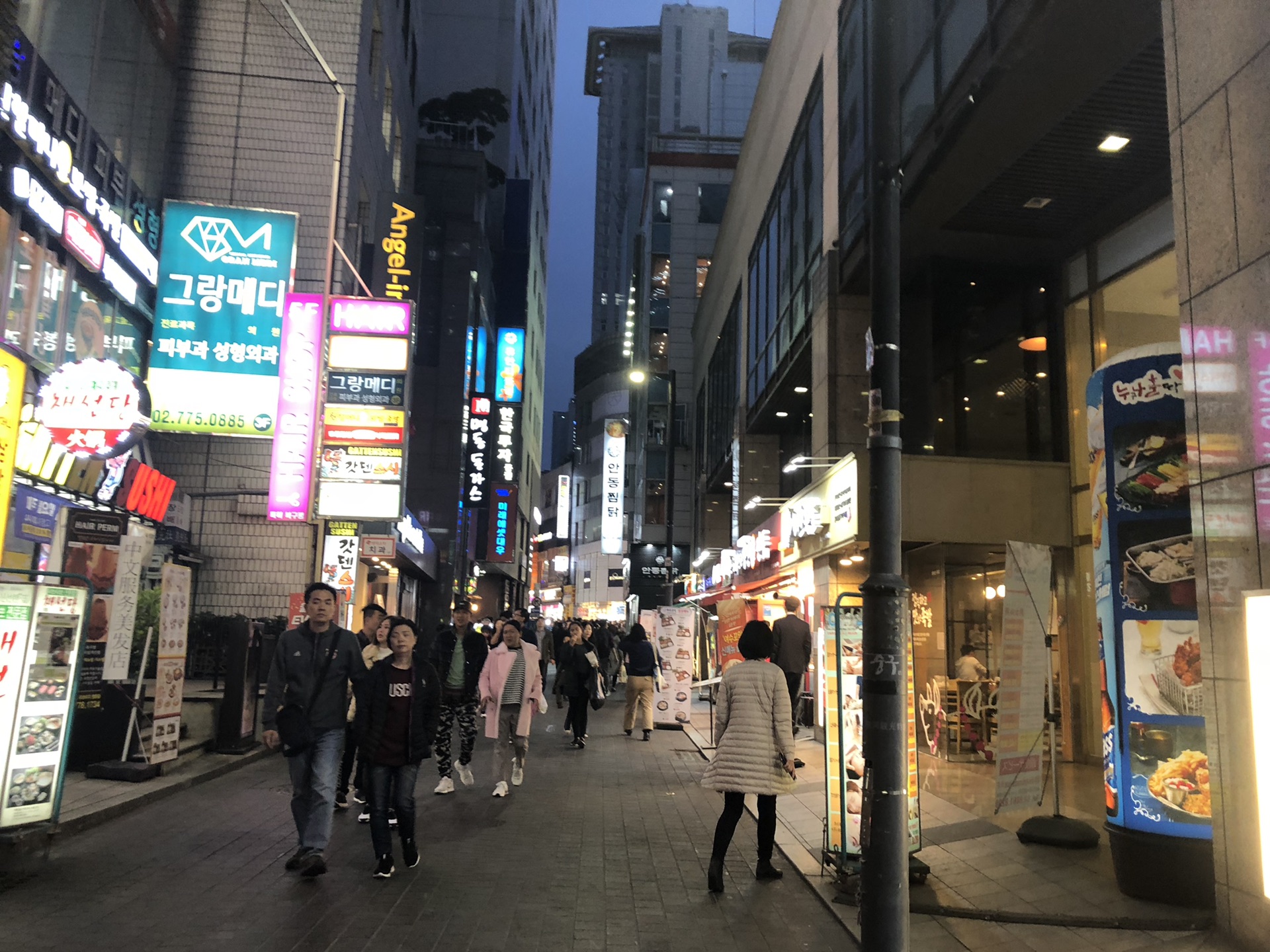 休整好了,傍晚来到了明洞逛吃一下。大街上中国人真多,走几步就听到中文。