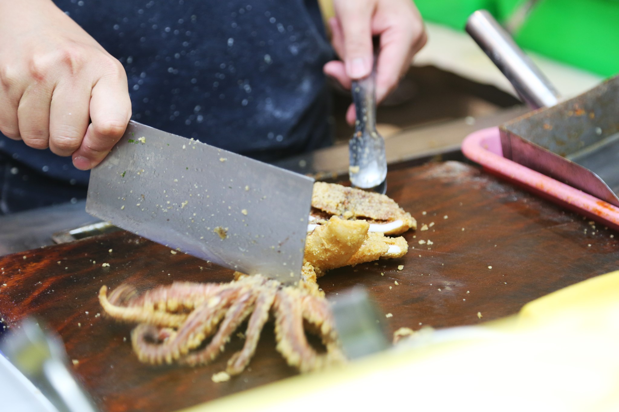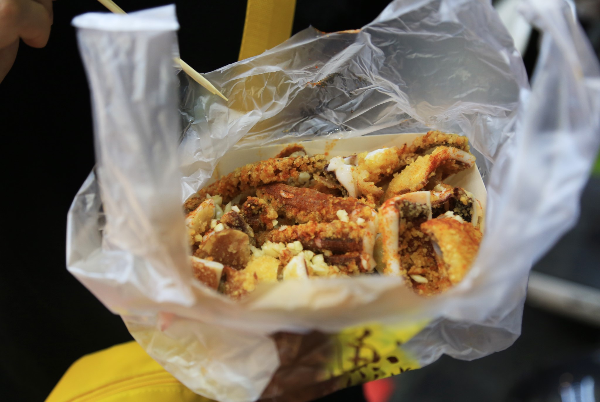从入口开始就进入了花眼模式,第一家是这个铁板鱿鱼,鱿鱼是先炸后烤,调料口味自选。