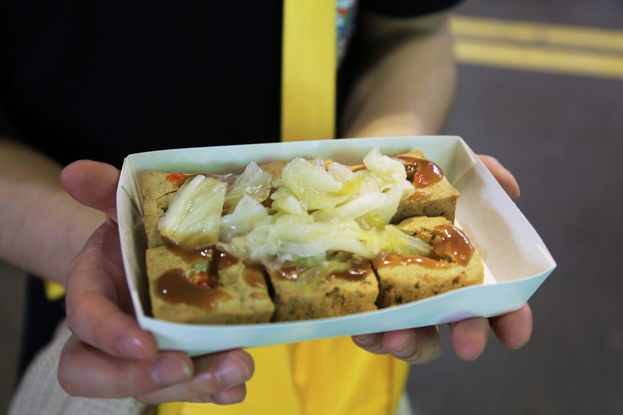 排队买臭豆腐,这家人气很旺,但是并不好吃,也可能是我们赶上这锅炸火大了,味道都发苦了,还是后来在台北吃到的好吃。