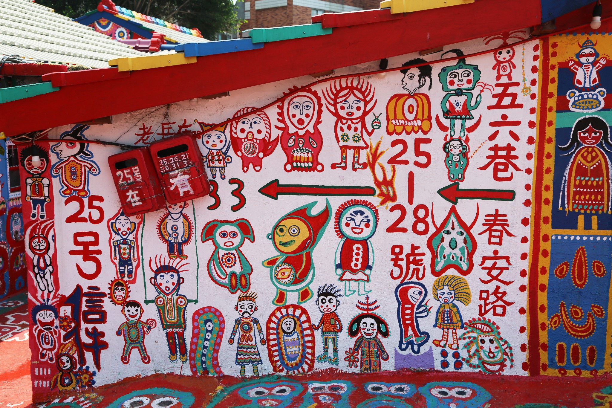 慢慢地老人越画越顺手,逐渐由屋内画到屋外,不久就把破旧的眷村变成了绚烂多彩的童话世界。