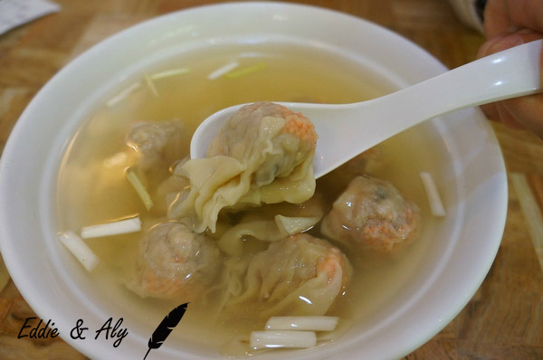 云吞面里的云吞每一个都有一只中等个头的虾,汤头也很鲜美,是那种海鲜味的汤头,