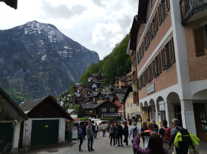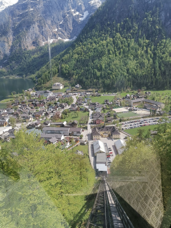 坐缆车上到山顶以后,我才庆幸自己坚持要来,绝对不枉此行,在山上,不仅可以看到小镇全貌,小镇和阿尔卑斯山脉相连的哈尔施塔特湖三位一体。