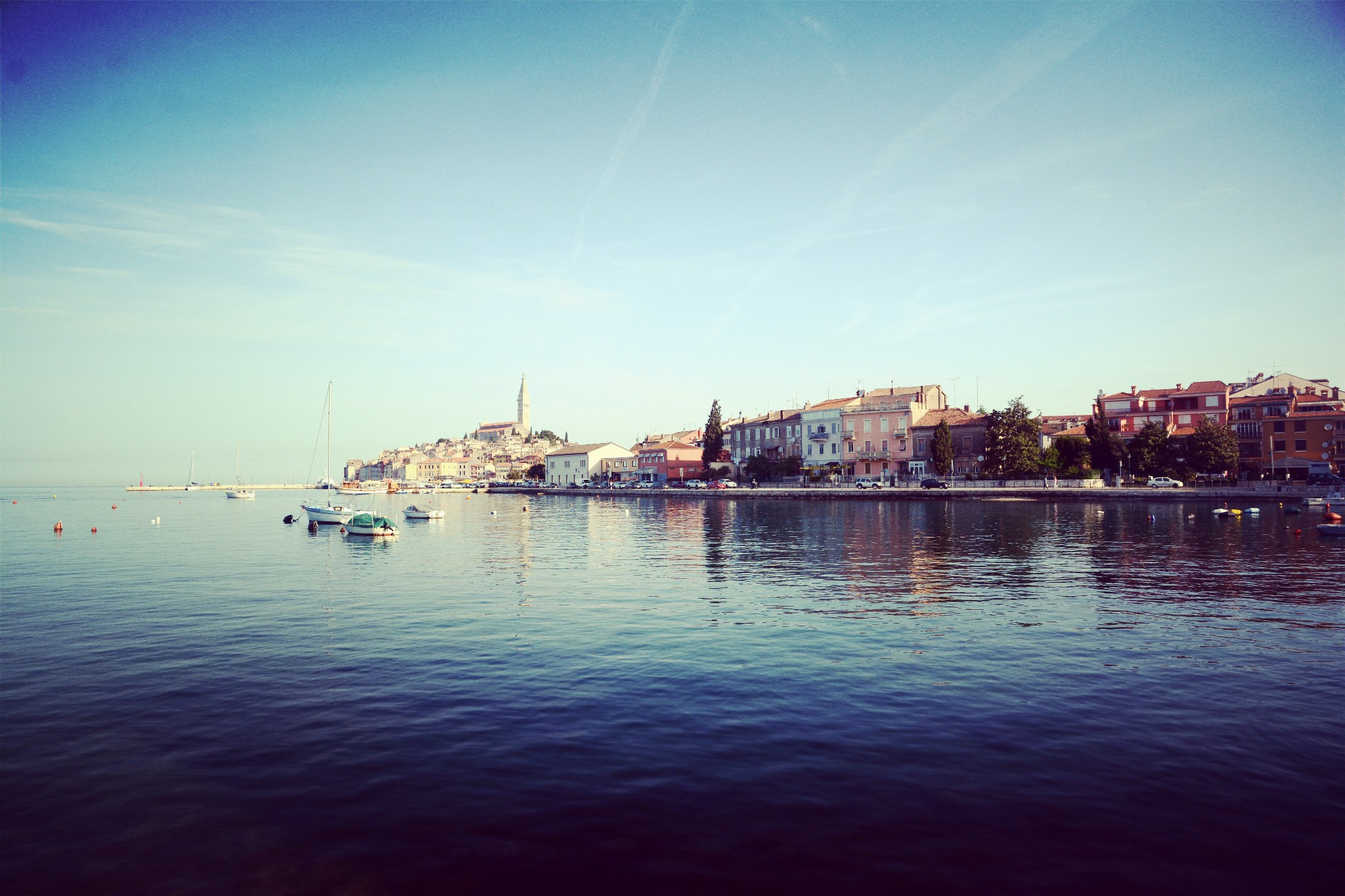 罗维尼,一个有着意大利风情的小镇,追溯历史,和意大利的确有着不解之缘,中间相隔一个亚得里亚海,有着小威尼斯之称,尤其著名的是罗维尼的落日,据说很是风情万种。吸引我的,反而是老城的石板路。只记得一篇游记中写道,记得穿一双防滑鞋,老城的石板路遇到下雨就是灾难。当时就想这石板路到底有多少年的历史,被磨得全都没了棱角。