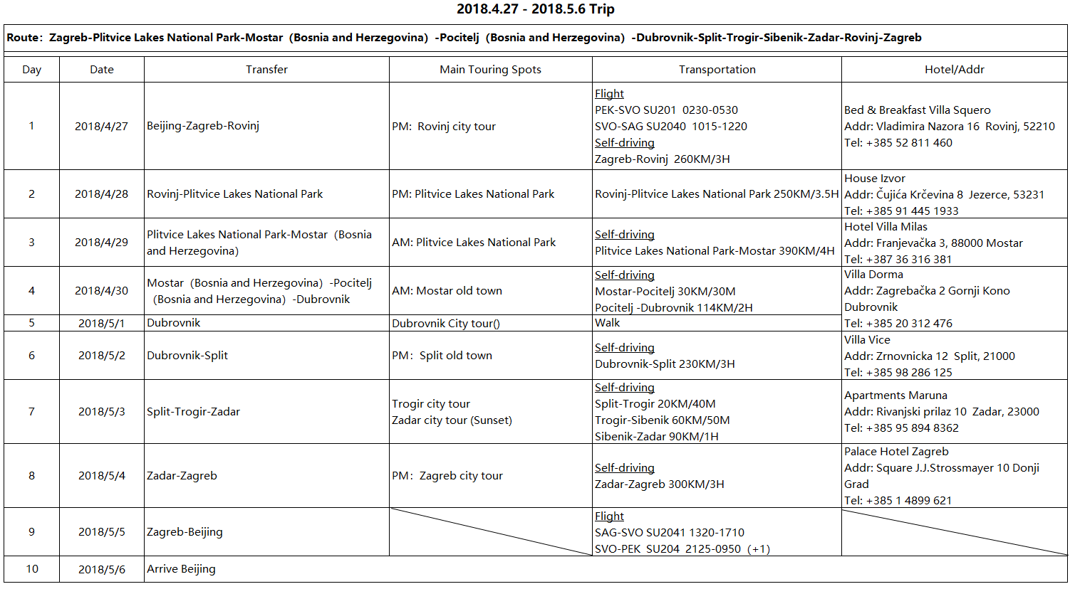 Day 1 Beijing-Zagreb-Rovinj